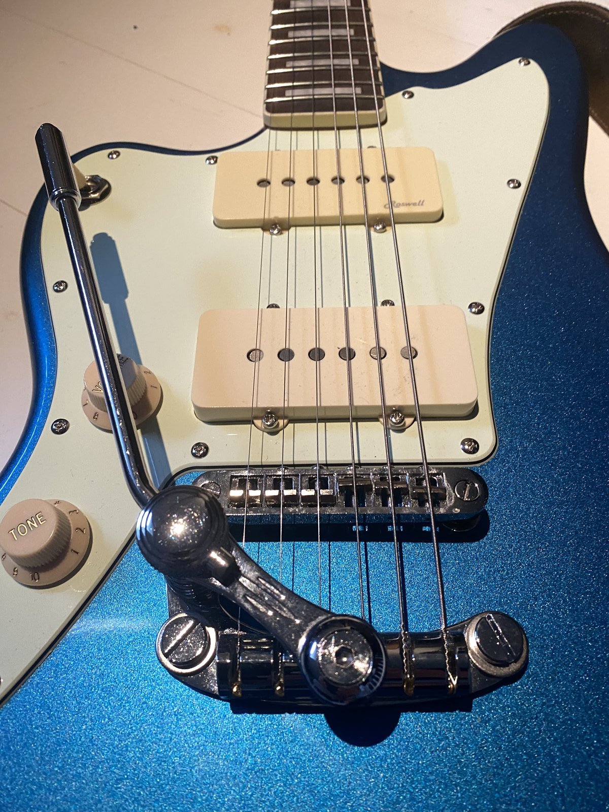 Tästä VIRHEETÖN erittäin mainio vasenkätinen offset, johon sijoitettu vasuri Duesenberg Les trem (huippu!) ja vire pysyy. Mikit vaihtuneet Jess Loureiron hyväsoundisiin käsintehtyihin mikkeihin. Kitara minitissä kunnossa ja säädetty 10-52 setille. Nauhan päät eivät raavi ja kaula istuu itselleni kivasti. Lähetyskin onnistuu kitarapahvilaatikossa ja kulut + 35¤ ostajalle. Hp. 250¤ sis. Les tremin tai 190¤ orkkis tallalla. Tallan palauttaminen ei aiheuta kitaraan mitään ulkoisia jälkiä. Hinta: 190 € | |