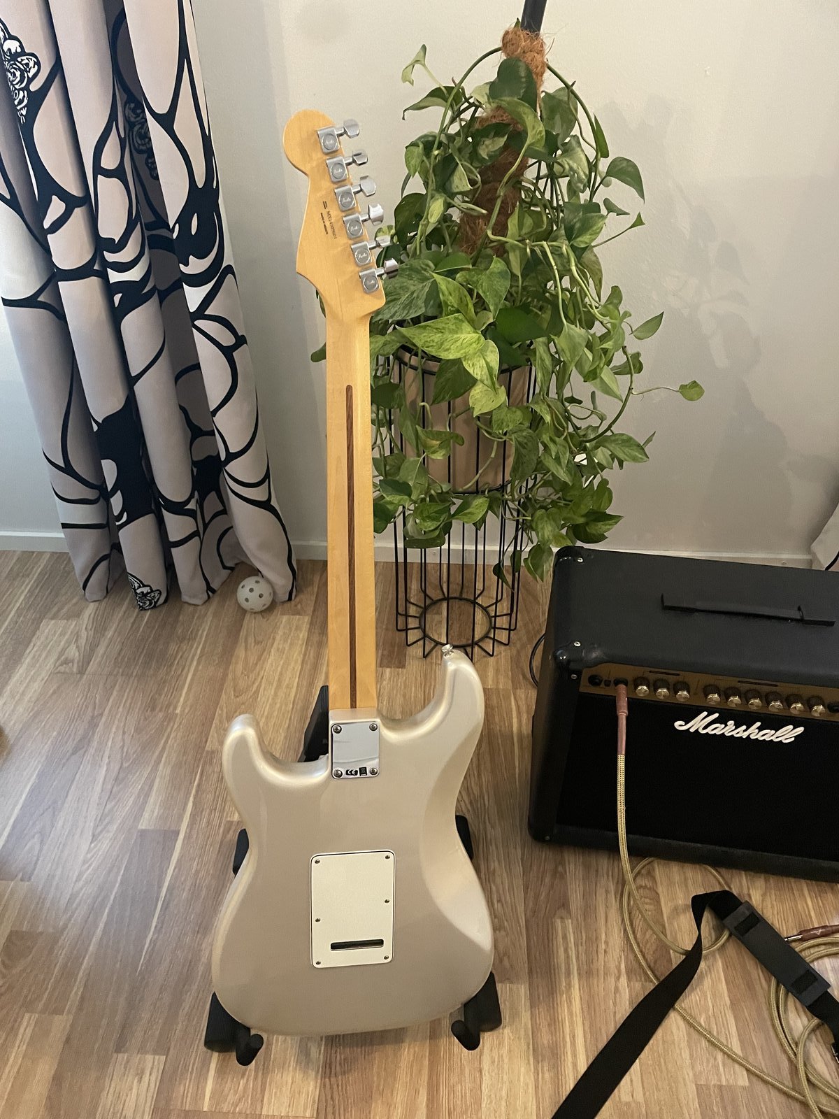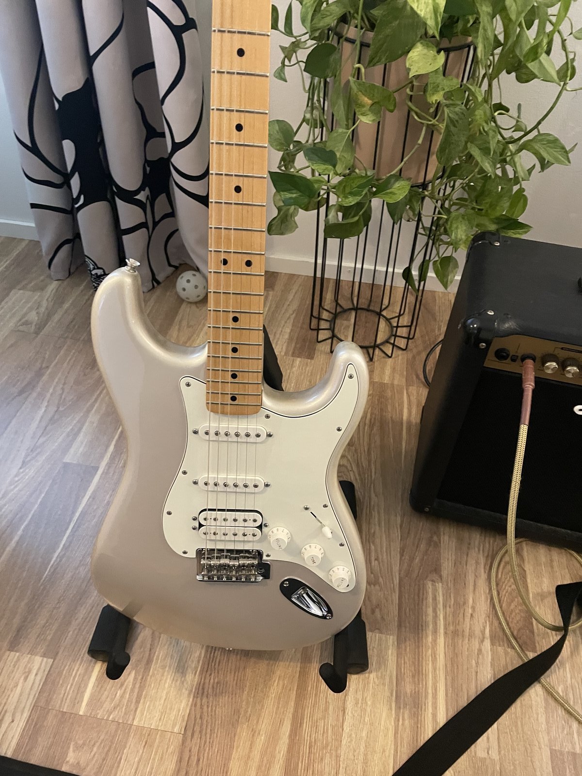 Myydään upea Fender Stratocaster HSS iOS, valmistettu Meksikossa. Kitara on kuin uusi – soitettu vain muutamia kertoja ja säilytetty aina kotona. Tyylikäs hopeanharmaa (silver) väri, vaahterakaula, ja monipuolinen HSS-mikitys (humbucker + kaksi single-coilia) tekevät tästä kitarasta täydellisen valinnan lähes mihin tahansa musiikkityyliin. Lisäksi iOS-liitäntä mahdollistaa yhteyden iPhoneen tai iPadiin suoraan äänitystä tai soittoharjoittelua varten. Tiedot: • Malli: Fender Stratocaster HSS iOS • Valmistusmaa: Meksiko • Väri: Silver • Kaula ja otelauta: Maple • Mikrofonit: HSS • Kunto: Kuin uusi • Mukana: Kitarapussi Hinta: 499 € | |