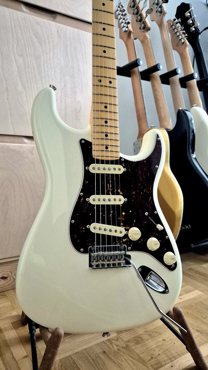 Lähes käyttämätön, 2025 ostettu upea strato. Nämä american prot on huippuja, ja ainakin kakkosessa on jo pyöristetty shoulder hiottu huippuunsa. Kitara soi hyvin ja on hyvissä säädöissä ysisetin kielillä. Ei moitittavaa, uudenveroinen. Pehmeällä laukulla 1300. Kovalla 1400. Hinta: 1300 € | |