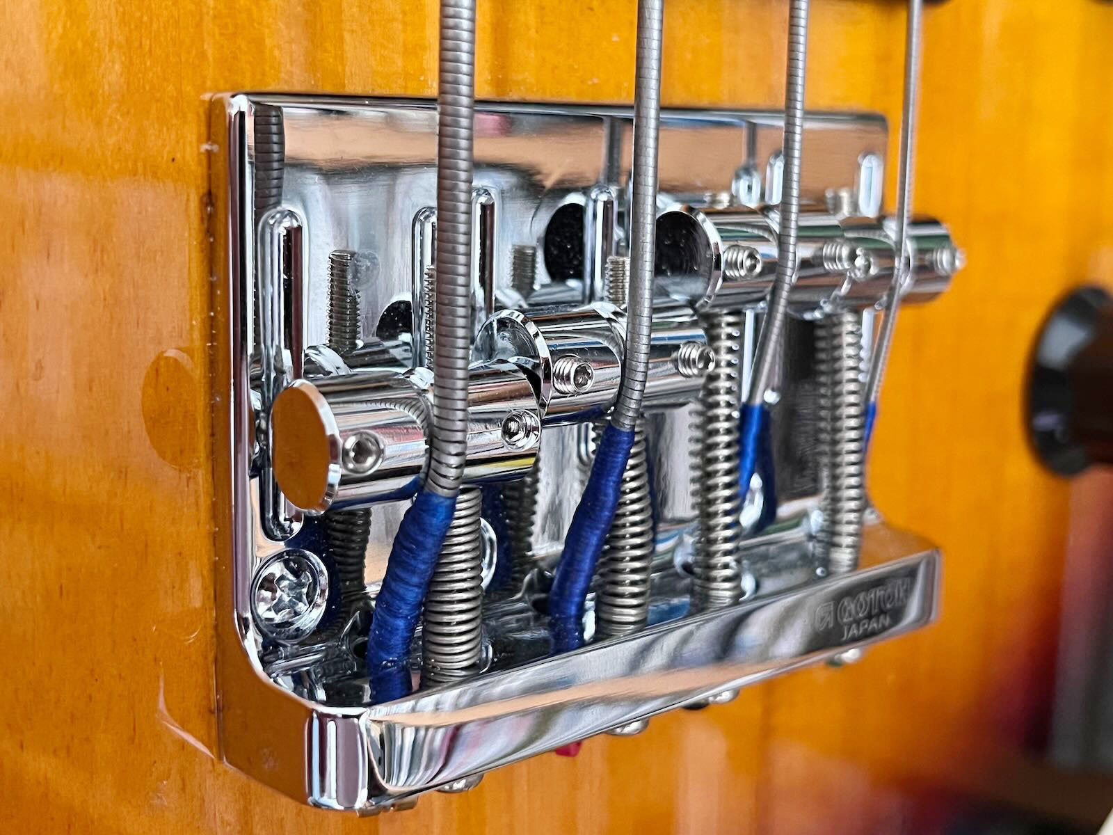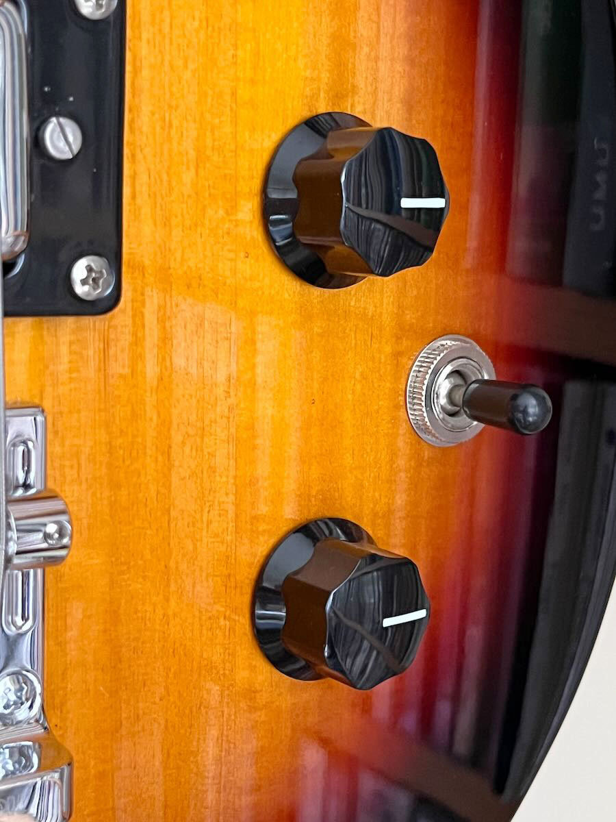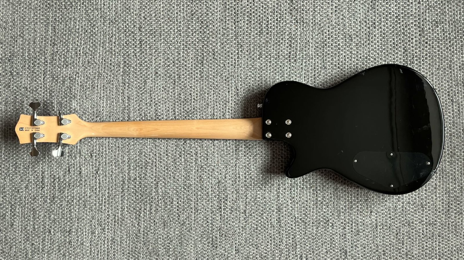 Lyhytskaalainen, kevytsoittoinen Gretsch Electromatic Junior Jet Bass. Soittimeen vaihdettu Gotoh virittimet ja saman valmistajan high mass talla. (Vanha talla tulee mukaan.) Elektroniikka päivitetty: uudet laatupotikat (CTS 500K LOG), parempi kondensaattori ja uudet johdotukset. Potikoiden nupit vaihdettu eri tyyppisiin. (Alkuperäiset nupit tallella.) Elektroniikkakotelo kansineen kauttaaltaan häiriösuojattu kupariteipillä. Uudenveroiset D'Addario Chrome Flatwound -kielet (45–100). Bodyssa muutama pieni kolhu, osin paikattu. Saundaa hyvältä. Soittotatsi sekä hienoviritys säädetty viimeisen päälle. Hinta: 280 € | |