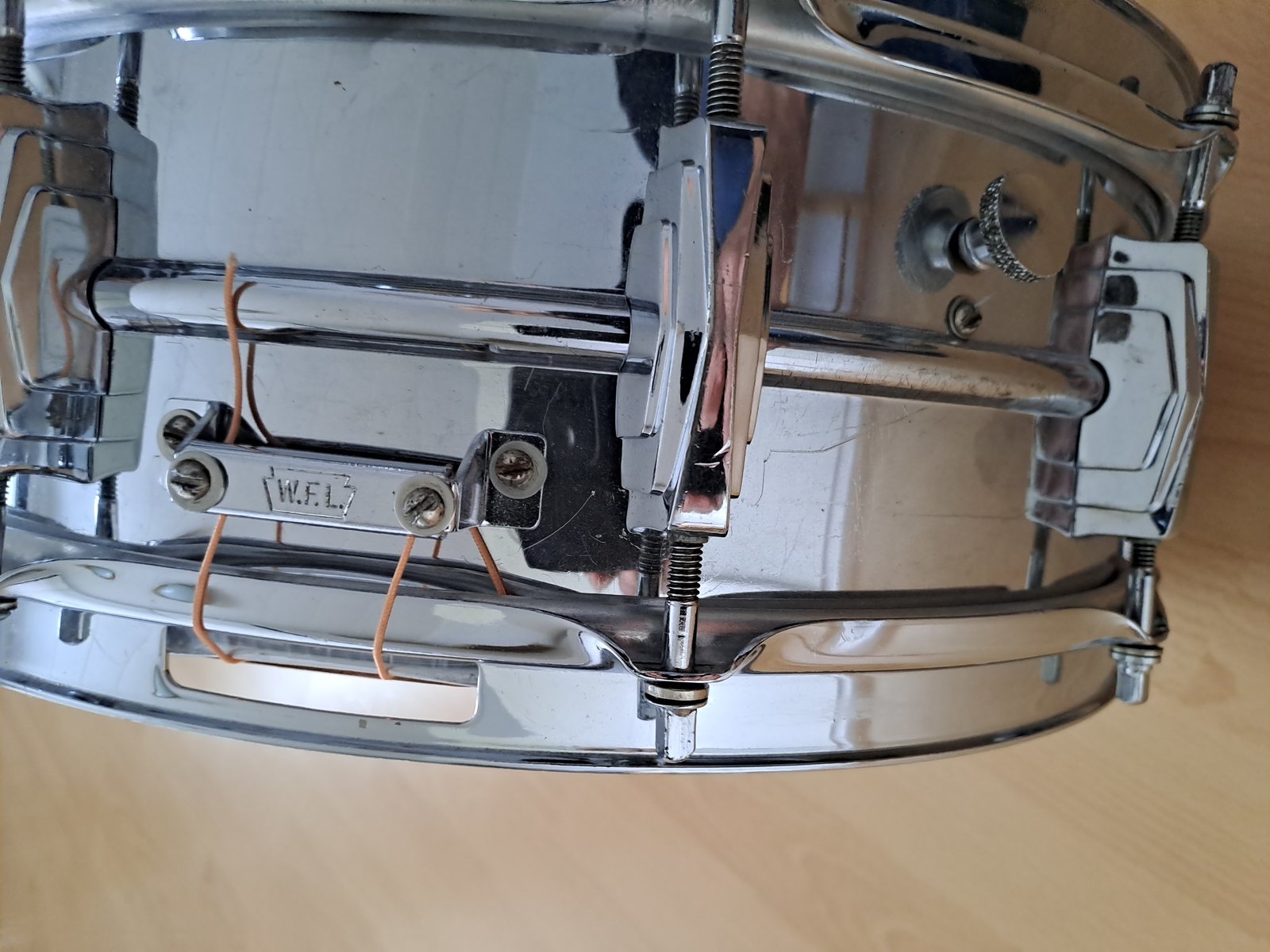 Myydään messinkirunkoinen Ludwig COB 14x5 vm 1958. Tämä on niitä ihan alkupään ns. Supraphoniceja. Transition badge,demppari paikallaan,wfl nostaja+vastakappale.messinki runko + vanteet.Puresound matto,ambassador kalvot. Kaikki ehjää ja kunnossa ja toimii. Toki näin vanhassa virvelissä on naarmuja ja käytönjälkiä.Mutta soundit tallella ja et varmaan löydä heti toista vastaavaa. Siksi ei myöskään ole halpa eikä pakkomyynnissä. Asiallisia tarjouksia kunnellaan myös.Hinta sisältää postikulut,ei vaihtoja. Hinta: 1225 € | |
