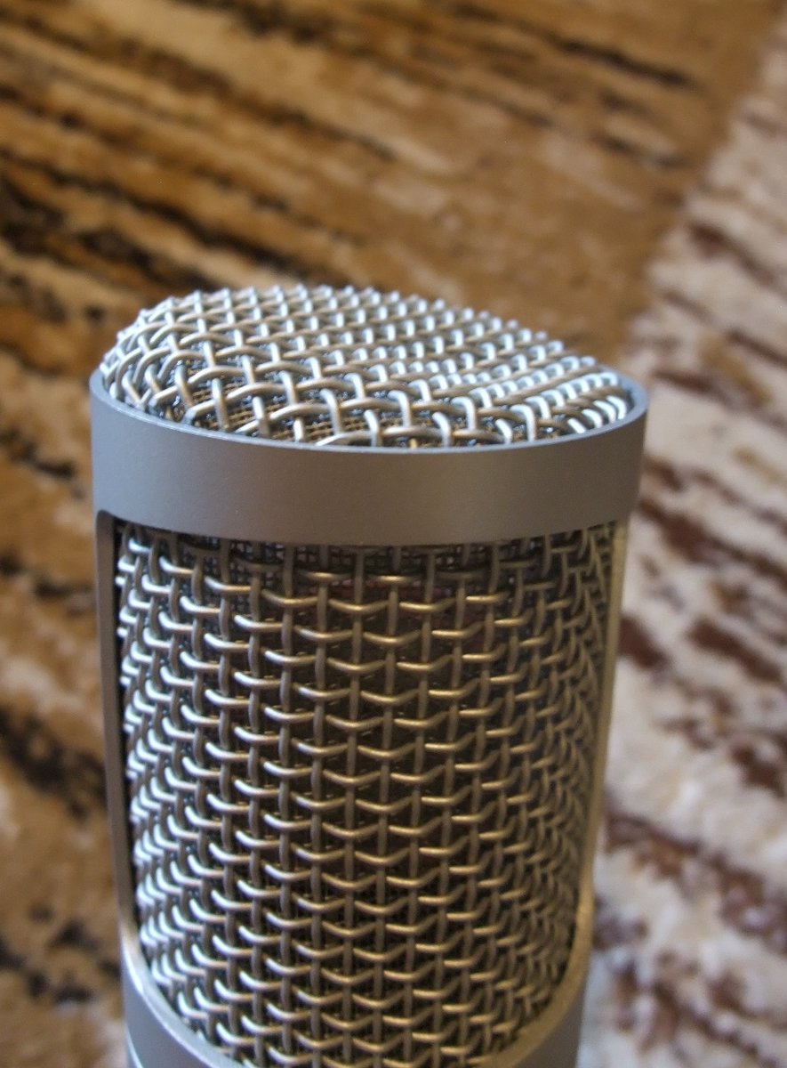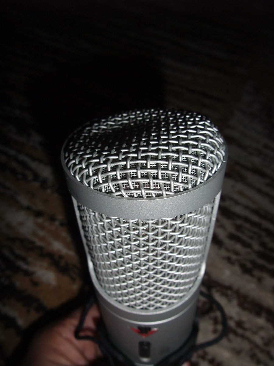 Ääni on hunajaa, tällä voisi puhua vaikka itsensä uneen. Toimintoina löytyy bassoleikkuri (75Hz ja 150Hz) sekä desibelitason leikkuri (-10bB ja -20dB). Mukaan kuvassa näkyvät oheiskamppeet eli tuulensuoja, kelluva ripustin ja metallinen sovitin jalustaan. Mikrofonin grilli on kolhiintunut päästä mutkalle, mutta mitään halkeamaa tai reikää siinä ei ole, eikä kolhu ole niin syvä, että olisi yltänyt strategiselle alueelle. Hinta: 120 € | |