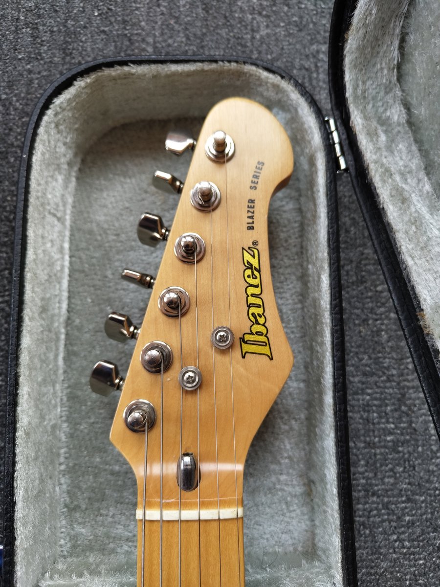 Orkkiskuntoinen 1980 Blazer BL-200. BL-200:ssa on saarnipuinen runko ja vaahterakaula. Ensimmäisen mallivuoden erikoisuutena on 22 nauhaa ja erilainen lavan malli kuin seuraavina vuosina esitellyissä. Mikit on Ibanez Super 70, kontrolleina volume, tone, 3-asentoinen mikinvalitsin ja vaiheenkääntö. Kitara on hyvässä käyttökunnossa, kaikki toimii. Jotain pieniä jälkiä toki löytyy. Laukku on hyväkuntoinen ja originaali Made in Japan. Lähinnä tarkoituksena on myydä kun jääny vähemmälle soittelulle, vaihdossa voi tarjota kuitenkin esim Evertune:lla varustettua 6-kielistä, jotain muuta kitarajuttuja?, jos ei nappaa niin osaan kieltäytyä kohteliaasti. :) Hinta: 550 € | |