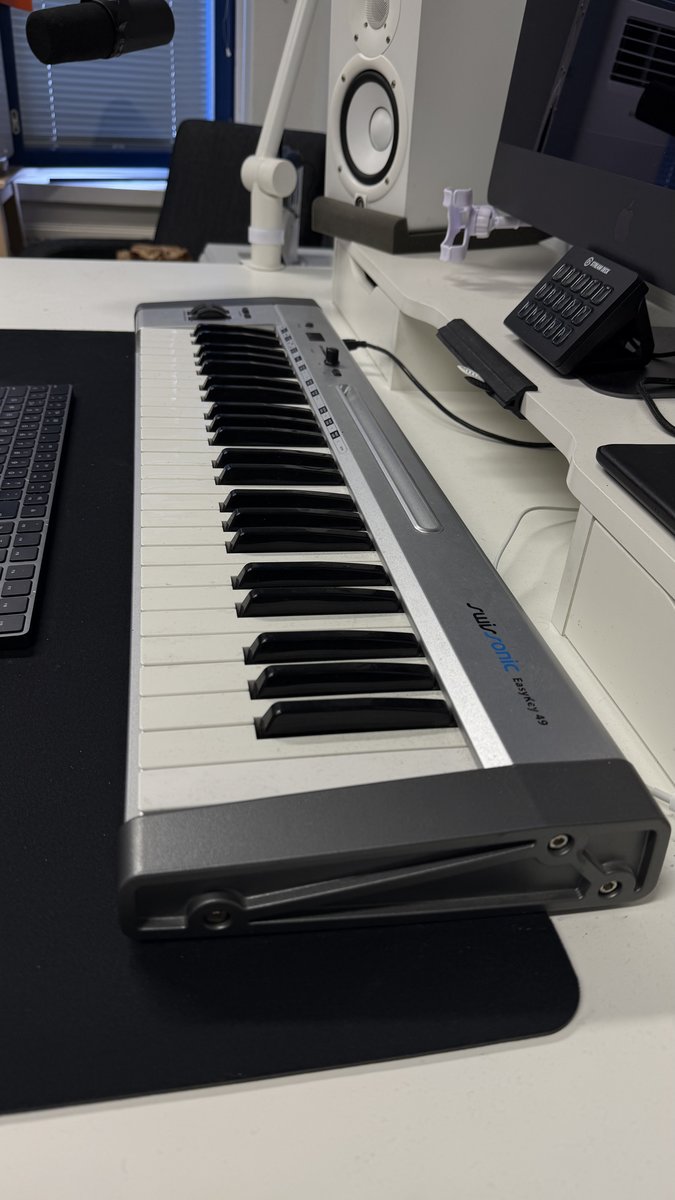 Myydään hyväkuntoinen turhaksi jäänyt midi-koskettimisto. 49 täysikokoista nopeusherkkää kosketinta Pitch-bend- ja modulaatiopyörät LED-näyttö 1 äänenvoimakkuuden säätöliukusäädin 1 Ohjelmoitava pyörivä enkooderi Oktaavipainike sävelkorkeuden transponoimiseksi 1 Polkimen liitin 1 MIDI-lähtö Parhaiten saa kiinni whatsapilla. Hinta: 65 € | |