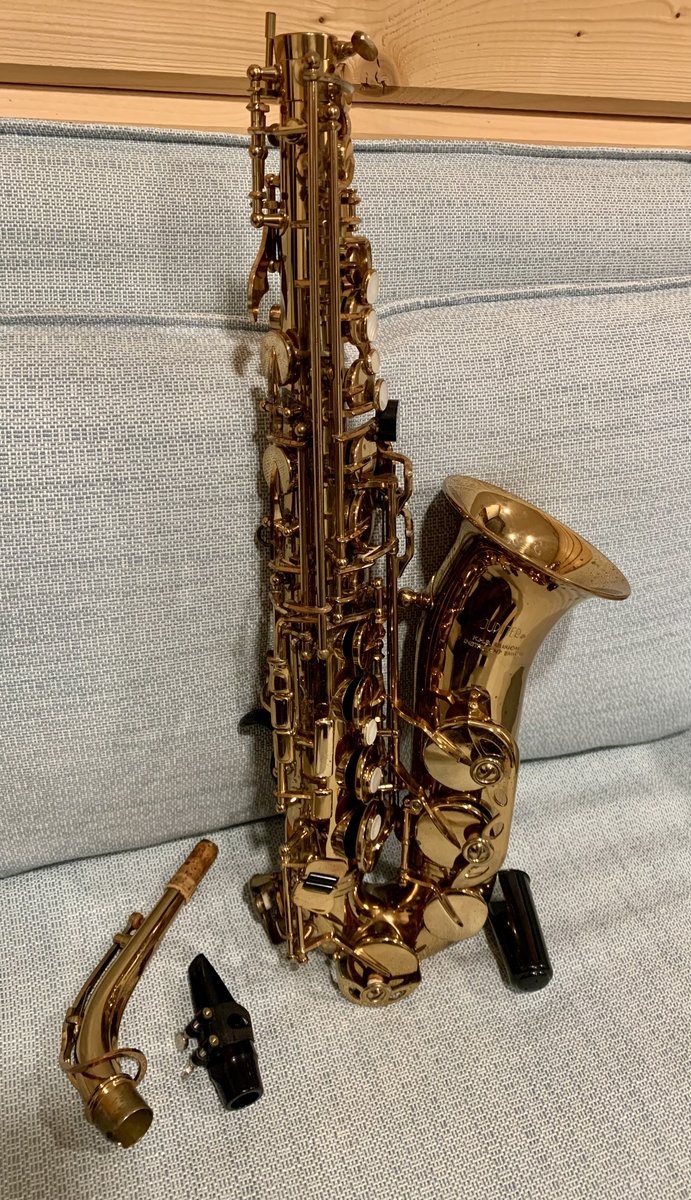 Jupiter JAS-767, saksofoni laatumerkiltä. Mukaan kotelo ja muut kuvassa näkyvät tarvikkeet. Kosmeettisesti kivassa kunnossa, ja omalla osaamisellani törähtää, mutta sen parempaan testailuun ja/tai laadunvalvontaan taitoni eivät veny. Testattavissa Keravalla, postituksestakin voidaan keskustella. Hinta: 470 € | |