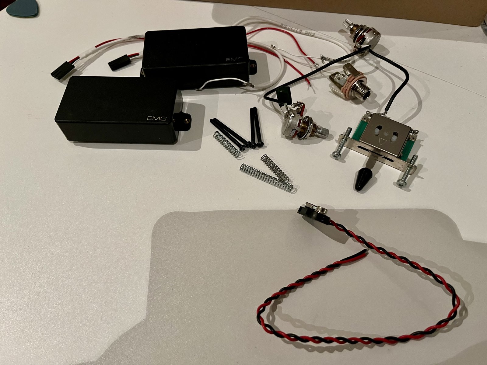 EMG setti, ja 1vol+1tone sähköt. Ei viitsinyt routtauksia avartaa niin jatkakoon matkaa Hinta: 110 € | |