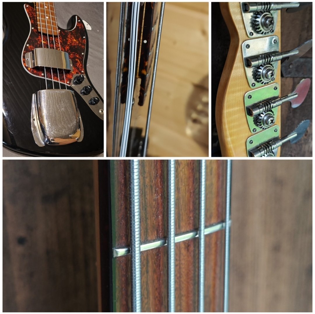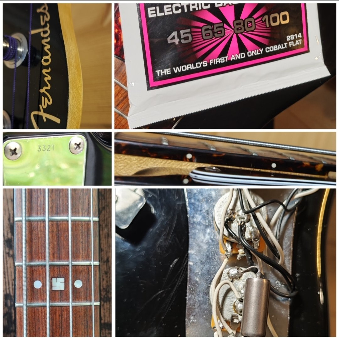 Ehkä harvinaisimpia Japan Fernandes 70's kauloja. Originaalisti ollut jazzin! kaula. Premium, top ja A1 kaikin puolin, jopa bindaukset tortoisea. Pitkä lippa heelissä. Lollipop alkuperäiset laatuvirit. 12. välinauhamerkki Japaniksi valo/aurinko/onni tms. (korjatkaa jos tietoa). Kaulalätkä kyseisestä bassosta. Body alkupään tuotannon Squju VM Jazz, siisti ja dingitön, ruuvinreiät bridgetuhkikselle. - Nauhat leveloitu, kruunattu ja puunattu puoli vuotta sitten. Satula uusittu ja trimmattu. Lauta öljytty. - Uusi pleksi. - CTS pots laatujohdotuksella ja paper-in-oil konkka. - Fender U.S.A mikit. - Schallerin hihnatapit. - Juuri laitettu uudet Ernien 45-100 flatit. - Mukaan tuhkis bridgelle ja mikille sekä perus gigbag. - Säädetty, läpikäyty ja puunattu. - Paino noin 4.5kg. Tuon hintaan Treen seutu ja ensi viikonloppuna kulkeutuu autolla Tre-Haapavesi. Lähetys sovitaan. Hinta: 490 € | |