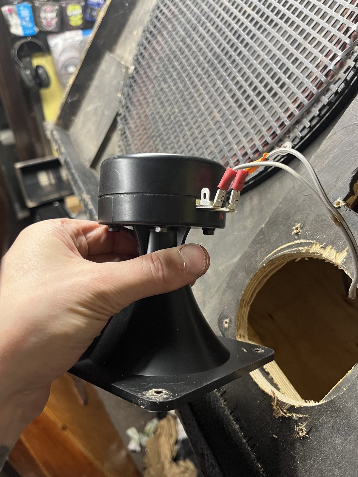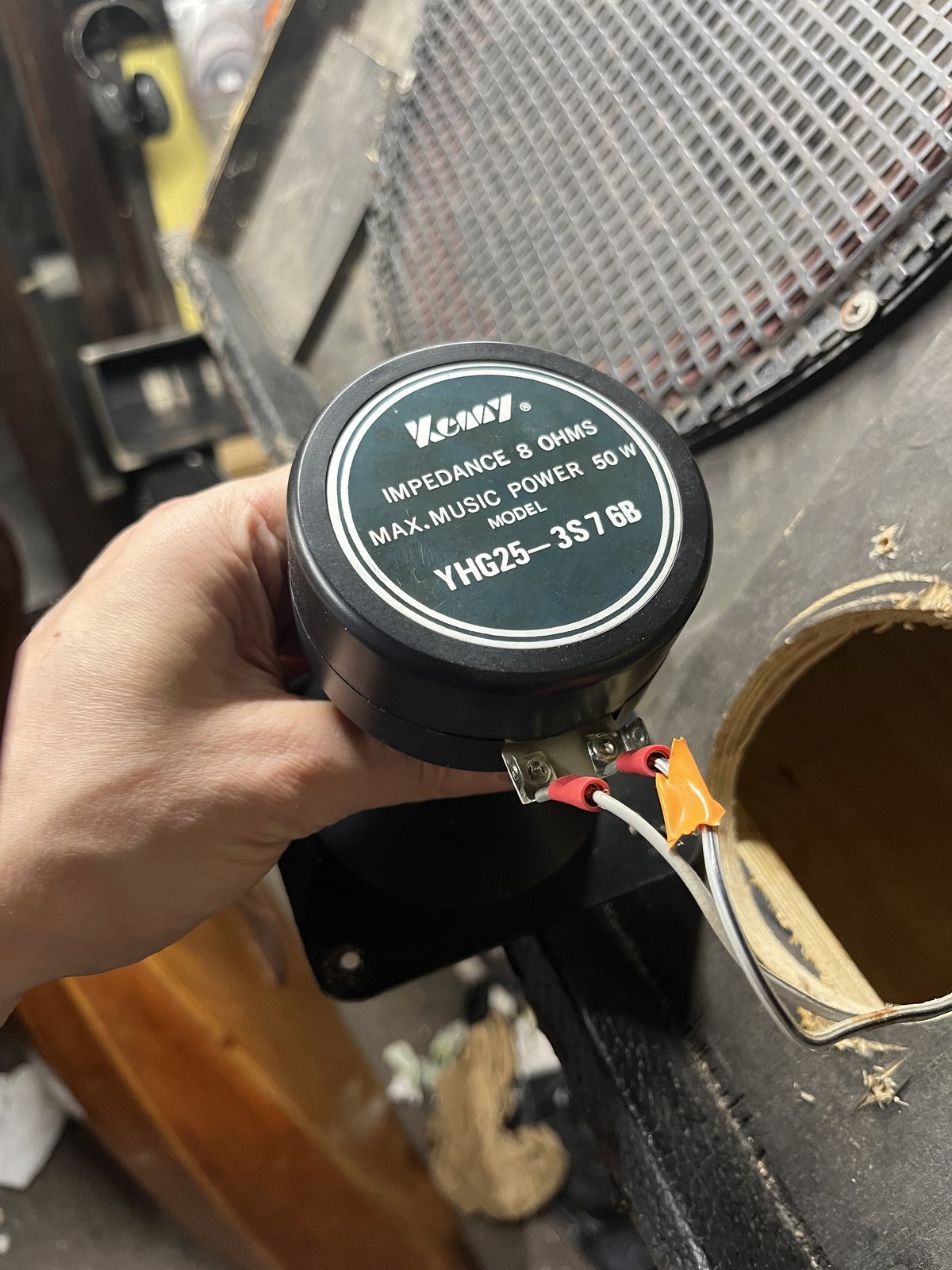 Kuvan kaiuttimet jouten. Vanhoista MS-Audion kulmamonitoreista pelastettu. Ovat ehjät ja toimivat kuten kuuluu vaikka vanhoja ovatkin 15” Eminence vuodelta 1984. Square Back magneetilla Hinta 45¤ 15” Beyma E-100 150W / 8 Ohm 50-3500Hz 98db Hinta 40¤ Tweeterit 2 kpl Kenny YHG25-3S 7 6B 50W / 8 Ohm Hinta parille 40¤ Hinta: 40 € | |