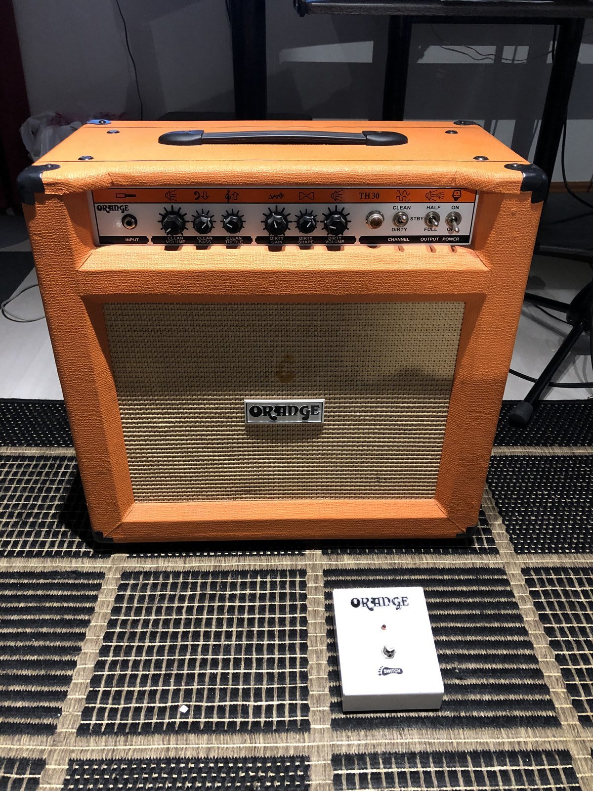 Myydään Orange TH30 kombo. Ollut lähinnä kotisoitossa. Osa Orangen logosta puuttuu etukankaasta, mutta muuten vahvistimen kunto on hyvä. Mukaan Orangen kanavanvaihto-pedaali. Hinta: 500 € | |