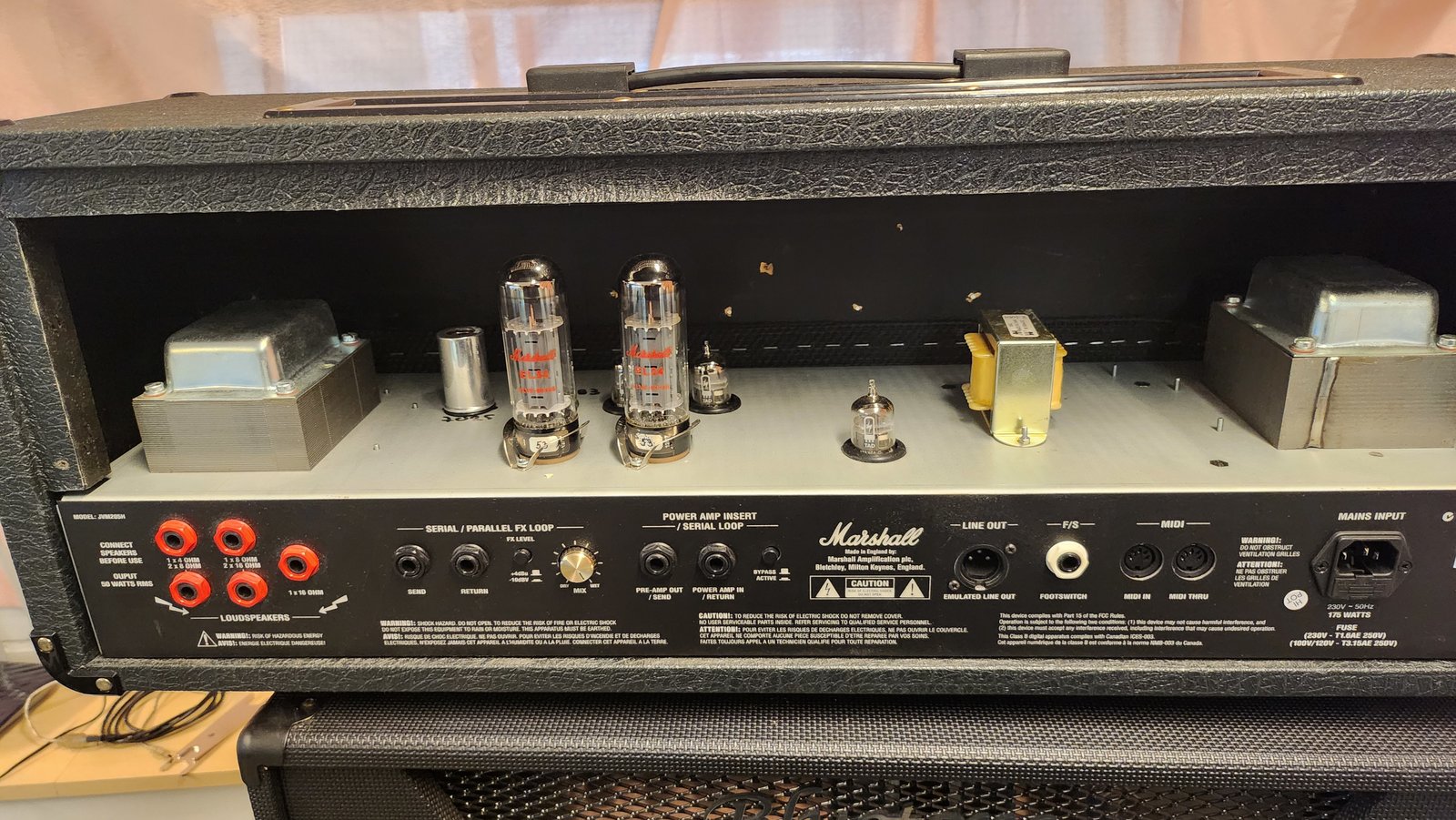Tarpeettomaksi jäänyt erinomaisen monipuolinen nuppi. 50 wattia on sopivan paljon, tai vähän, normaaliin käyttöön. Modattu choke, C83, OD2 to OD1 mod, pleksi ja negative feedback. Lopputuloksena erinomaisen avoin soundi! Etuasteessa TAD putket. Kanavanvaihto pedaali mukaan. Modeista johtuen myyn varaosana tai osakasana. Laitetta voi oston yhteydessä testata treenisvolumeilla. Ei vaihtoja. Hinta: 750 € | |