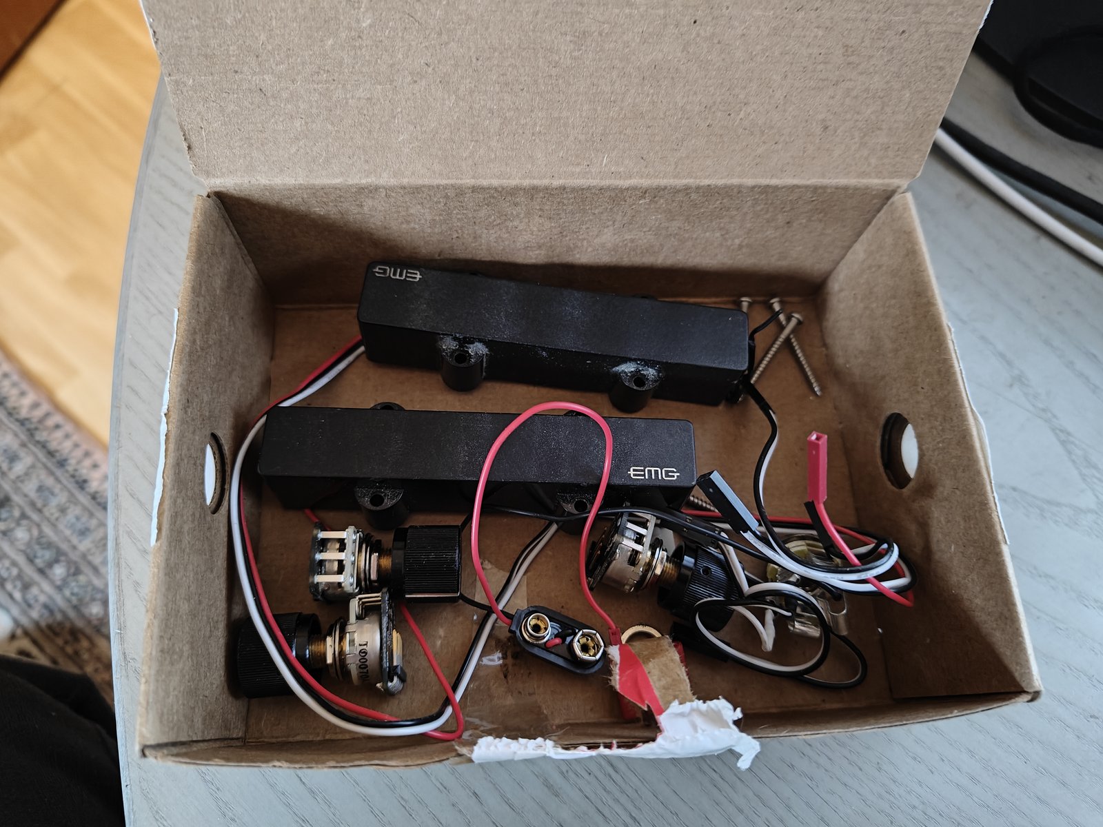 Myydään EMG:n viisikieliselle bassolle tarkoitettu aktiivimikkisetti. Käy ja kukkuu 100% ja mukana kaikki tarvittava klassiseen Vol-Vol-Tone-setuppiin. Bonuksena Sadowsky-tyyliset potikannupit, joilla soundi paranee välittömästi. Näiden asentaminen onnistuu todella vaivattomasti ilman kolvaamista. Paketista puuttuu 4kpl mikin kiinnitysruuveja. https://www.thomann.de/fi/emg_j5_set.htm?atr=true Nouto Oulunkylästä tai postit ostajalle. Hinta: 80 € | |