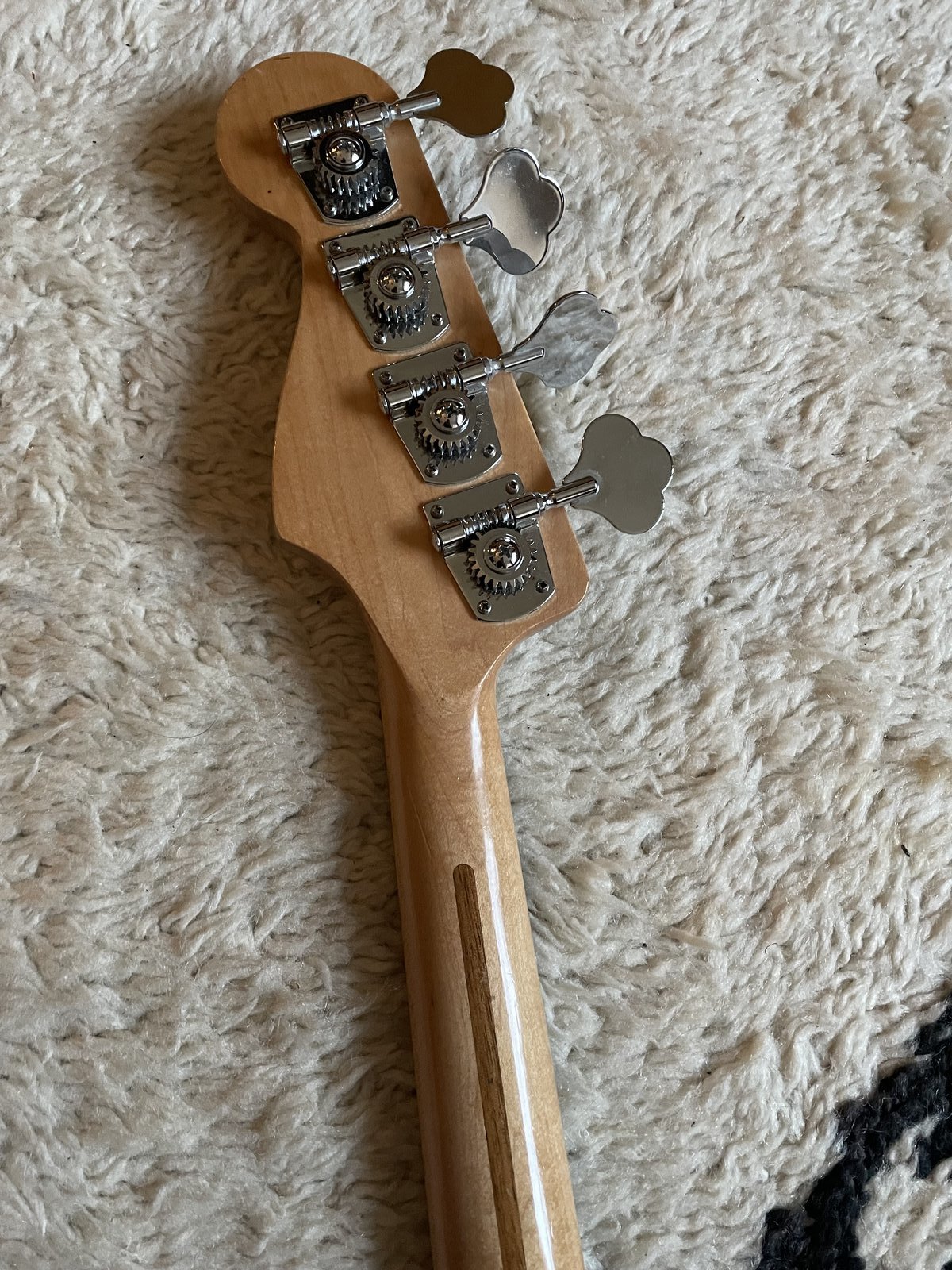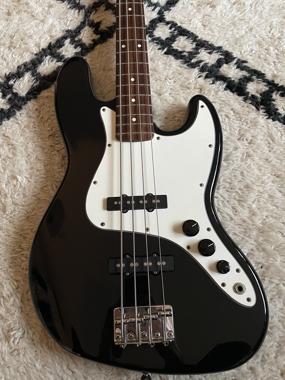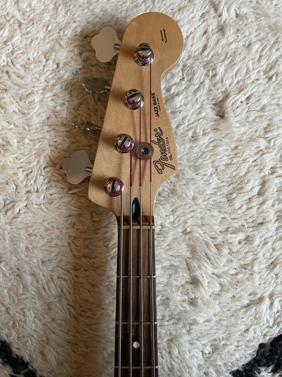Otsikon mukainen mainio huokeamman pään Fenderin jenkki-jazzari myyntiin. Sarjanumeron mukaan valmistettu kesäkuussa 1999. Soundi ja tuntuma on taattua jazzaria, soi komeasti pitkin pituuttaan. Satunnaisia pintanaarmuja lukuun ottamatta erittäin hyvässä kunnossa ja kaikki toimii kuten pitääkin. Nauhoissa kevyttä käytön jälkeä. Kielet eivät enää ole uusimmasta päästä, mutta mainiosti soivat vielä näinkin. Potikan hatut vaihdettu perinteisiin jazzari-mallisiin, alkuperäiset strat-tyyppiset hatut saa halutessaan mukaan. Vaihdokit tervetulleita myös, erityisesti laadukkaat akustiset. Testailut onnistuu Hakaniemessä, lähetys hoituu kuluja vastaan. 0400197370 tavoittaa! Hinta: 750 € | |