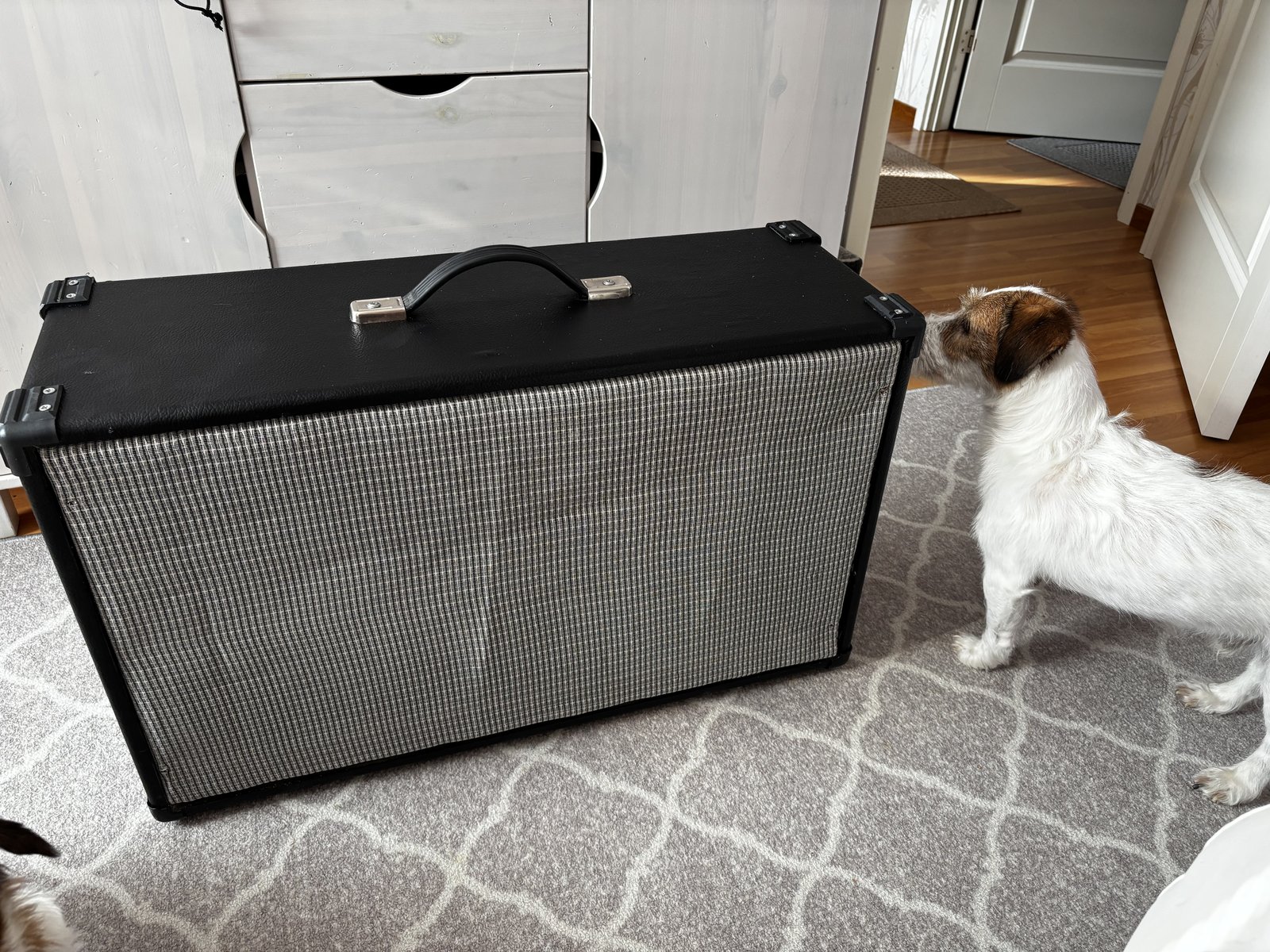 Myyn mäntyvanerista itsetehdyn todella jämäkän 212-kaapin, vähän rokkirupea, mutta yleisilme siisti. Koira ei kuulu kauppaan. Kaapissa Eminencen The Governor ja Private Jack-elementit, molemmat 8 ohmia, kuorma 16 ohmia. Koko 73*45*27. Sellainen huomio, että kunmassakin elementissä on pienet reiät, näkyvät kuvissa, The Governorissa nuppineulanpään kokoinen reikä keskellä elementtiä ja Private Jackissä lähellä reunaan noin kahden nuppineulanpään kokoinen reikä. Soundiin ei soitettaessa ole kuitenkaan vaikutusta mitenkään eli rokkaa normaalisti. Jos haluat ostaa pelkät elementit niin hinta on 40¤/kpl, pelkkä kaappi 60 euroa. Vain nouto Riihimäeltä. Kaappi painaa niin paljon eikä ole sille pakkausmateriaaleja. Jos ostat molemmat elementit niin niille saattaa löytyä laatikko. Vaihdossa kelpaa SD:n musta Pearly Gates-tallamikki Les Pauliin. Hinta: 120 € | |