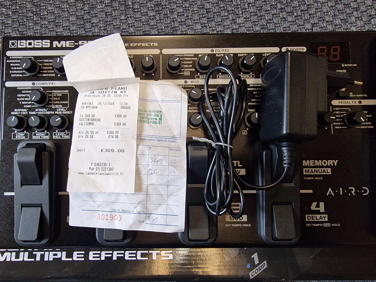 Myydään otsikon mukainen muljutin. Uudenveroisessa kunnossa alkuperäisessä laatikossa. Virtalähde mukaan. Takuuta yli vuosi jäljellä. -Mika- https://www.thomann.de/fi/boss_me_90.htm?atr=true Hinta: 210 € | |