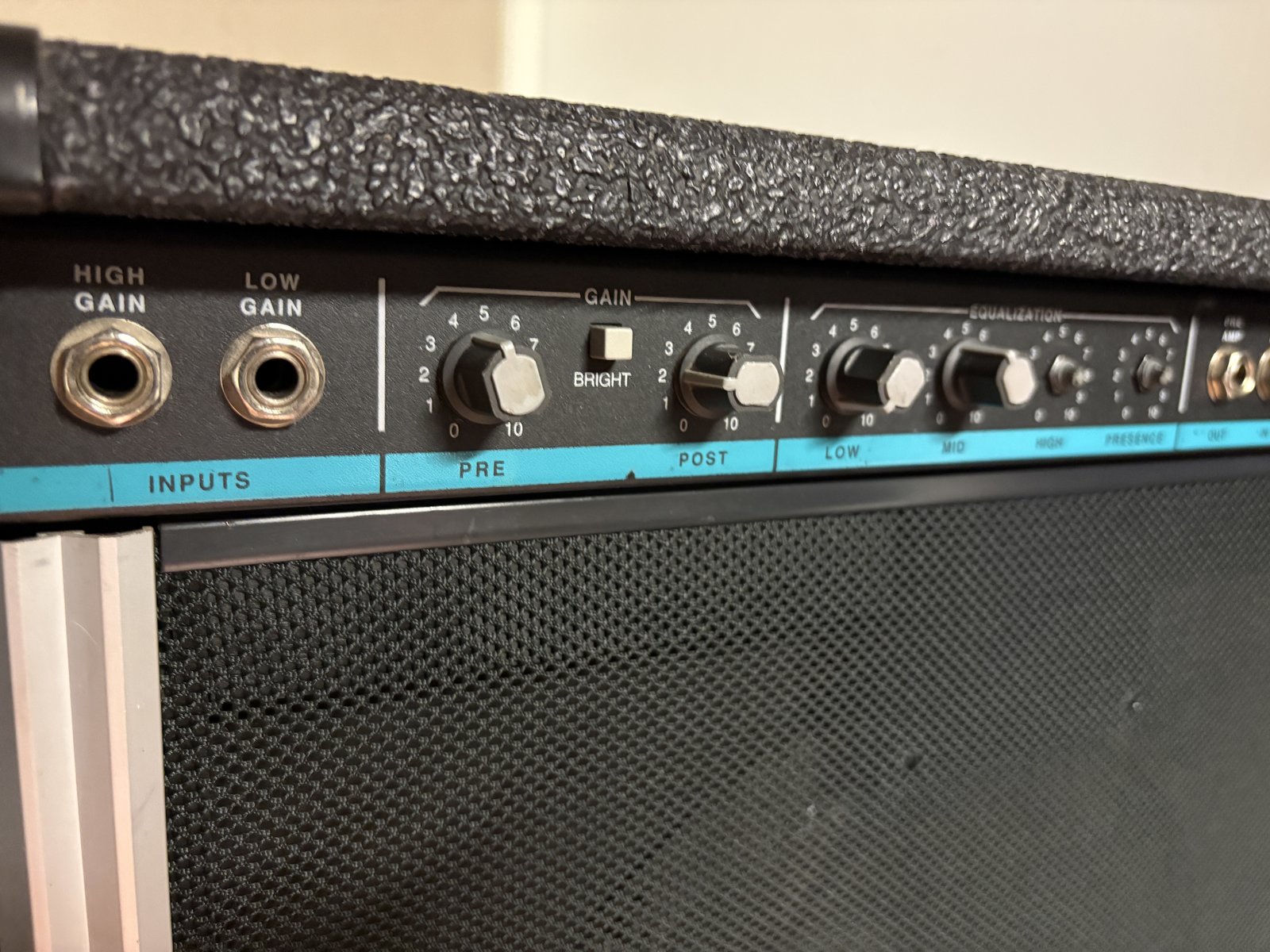 Hyvin soiva, mutta ulkoisesti jo vähän elämää nähnyt bassokombo. High ja presence nupit puuttuvat mutta kyllä noita kääntelee ilmankin tarvittaessa. Kaikki potikat toimii. Kuvasta puuttuu yläosasta kahva jonka saa helposti ruuvattua takaisin paikalleen, nyt ollut irti kun päällä ollut toinen vahvistin. Etukankaasta irroitettu Peavey logo on myös tallessa. Nouto Tampereen keskustasta. Hinta: 100 € | |