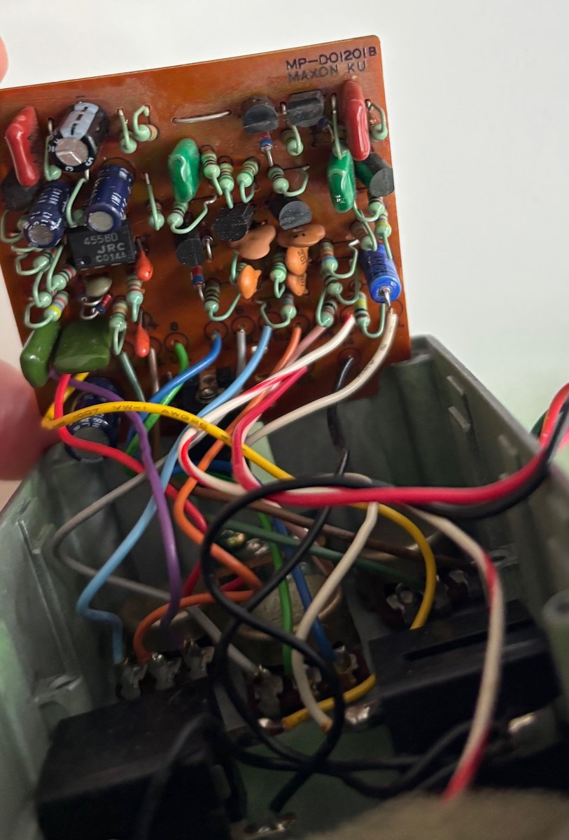Myynnissä erinomaisessa kunnossa oleva Maxonin huhtikuussa 1981 valmistama Ibanez TS-9. Siru: JRC4558D Pedaalista puuttui Kitarakuusta ostettaessa pohjalevy, joka korjattiin uudella, alkuperäisellä Ibanezin varaosalla. Mieluiten nouto, toki postitus onnistuu +5¤ lisähintaan, jolloin ennakkomaksu MobilePaylla tai tilisiirto. Yhteydenotot alkuun joko pikaviestillä tai sähköpostilla Hinta: 300 € | |