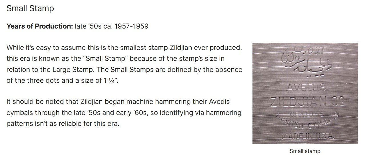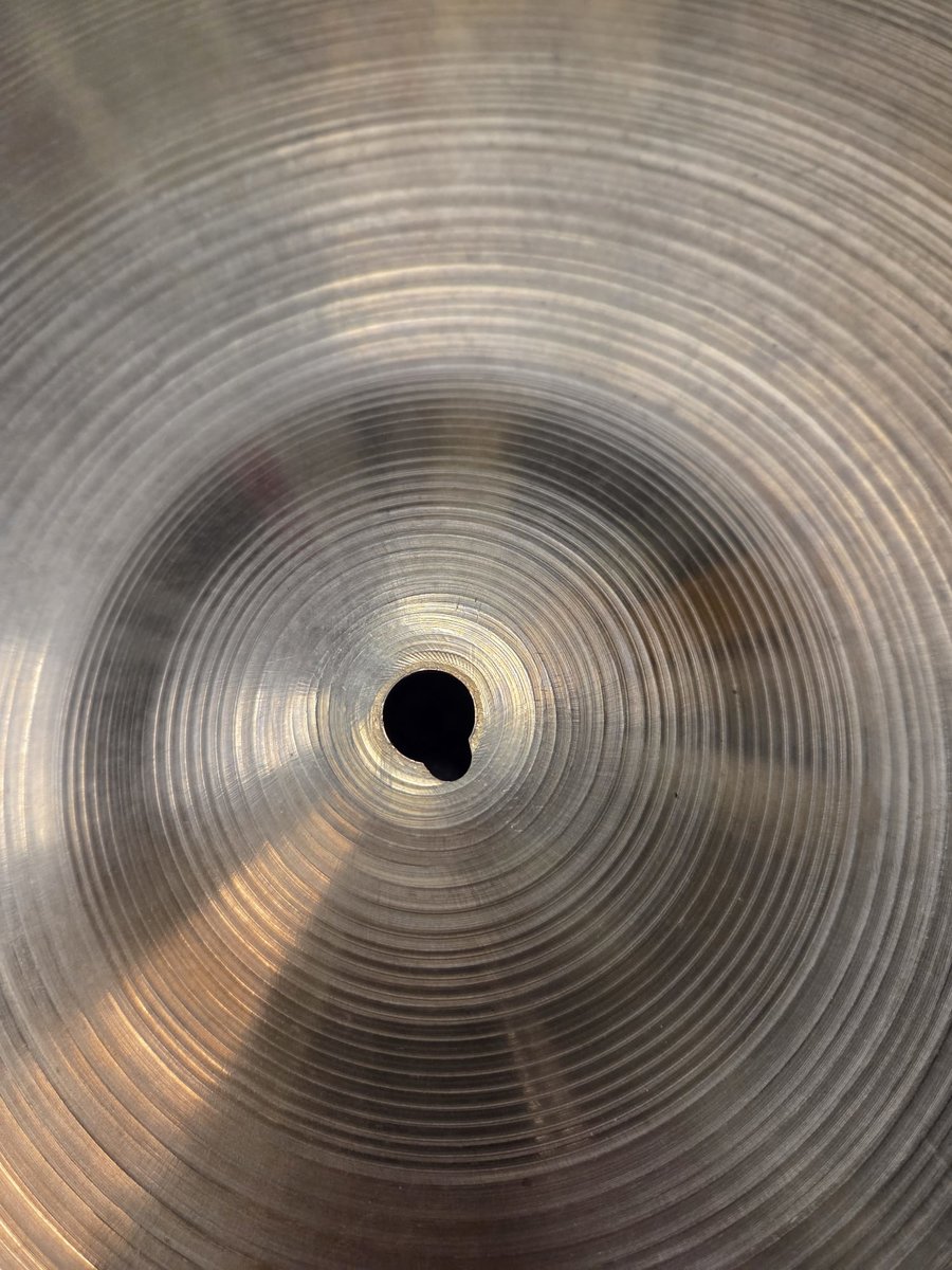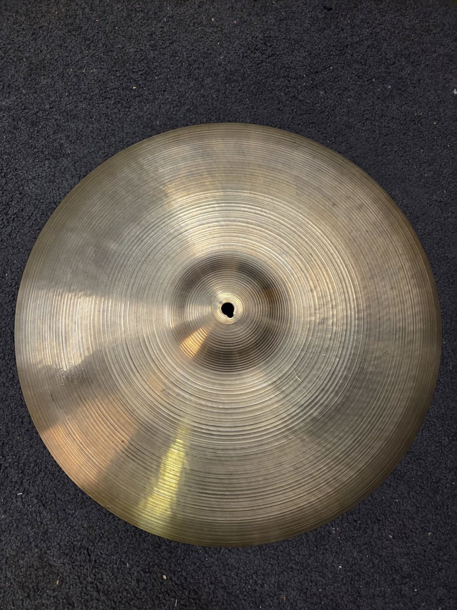 Vuosikausia nurkassa lojunut Zildjian pelti. Ei tarkkaa tietoa mallista. Jokin medium painoinen on. Selkeä pingi joten voisi olla jokin pieni ride tai tukevampi crash. Kello aika kuuluva. Painoa n. 1475g. Melkoinen keyhole, mutta muuten kunnossa. Soi nätisti mutta liian kovaa mun kattaukseen. Alustavan selvityksen mukaan vuodelta 1957-59. https://reverb.com/news/how-to-date-an-avedis-zildjian-cymbal Hinta: 100 € | |