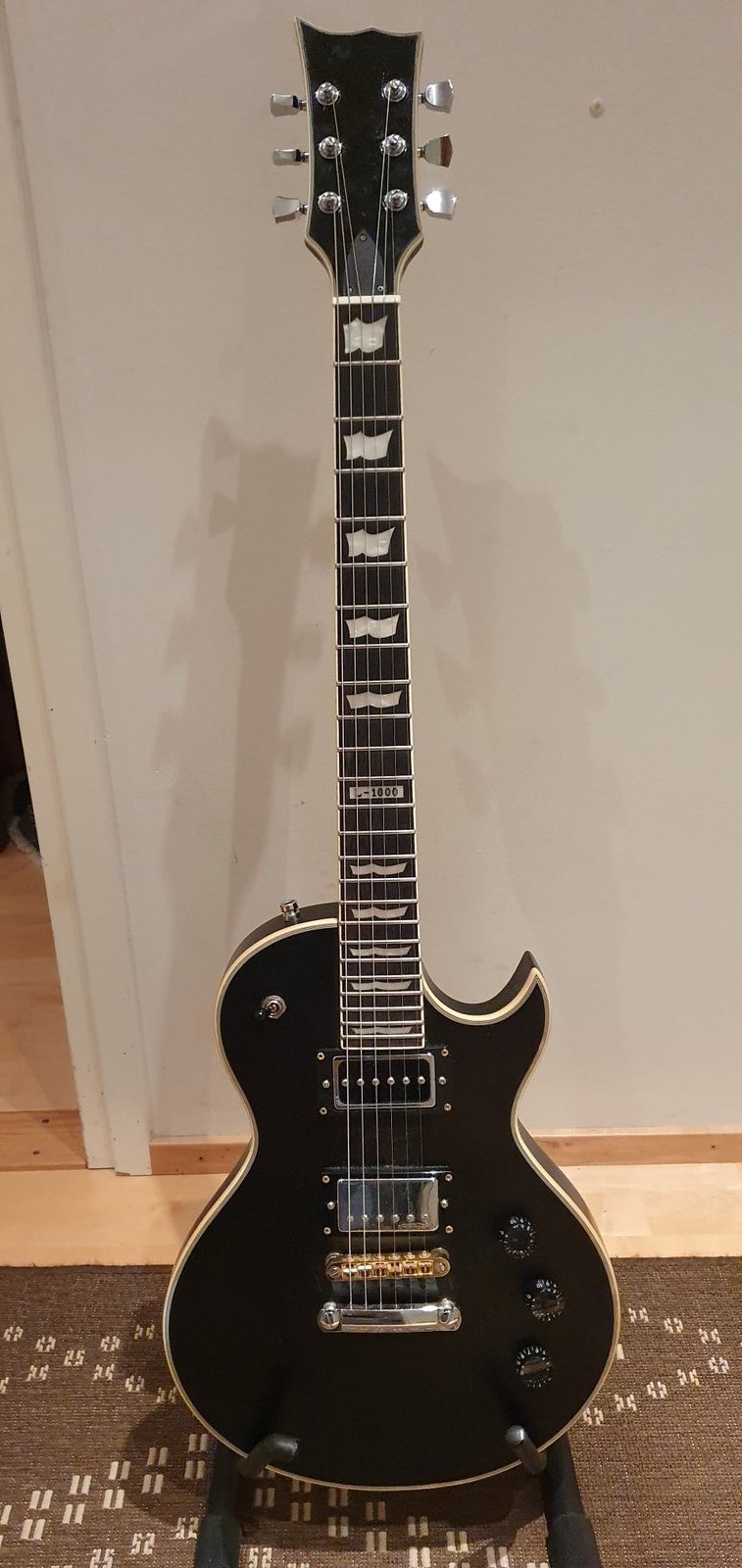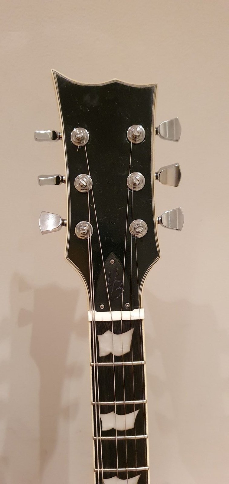 Harley Bentonin Progressive Line keppi, muutettu passiiviksi. Gotoh Magnum lukkovirittimet, Wilkinsonin PAF tallassa ja itselle tuntematon kaulamikki. Joku on koittanut peittää Harleyn logon lavassa, piti maalata uudelleen kun ei raaputtamalla saanut fiksun näköiseksi. Hyvä soitin halvalla. Kaikki pelaa täysin, on vaan modattu paremmaksi. Hinta: 100 € | |