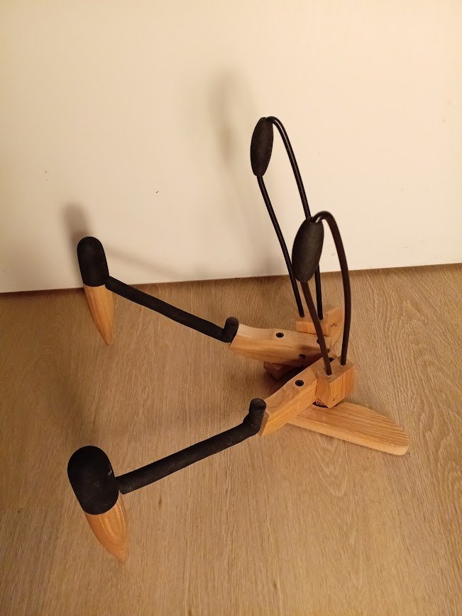 siisti ja tukeva puinen kitarateline lattialle. saa taitettua helposti kokoon. teline uusi ja käyttämätön. Hinta: 20 € | |
