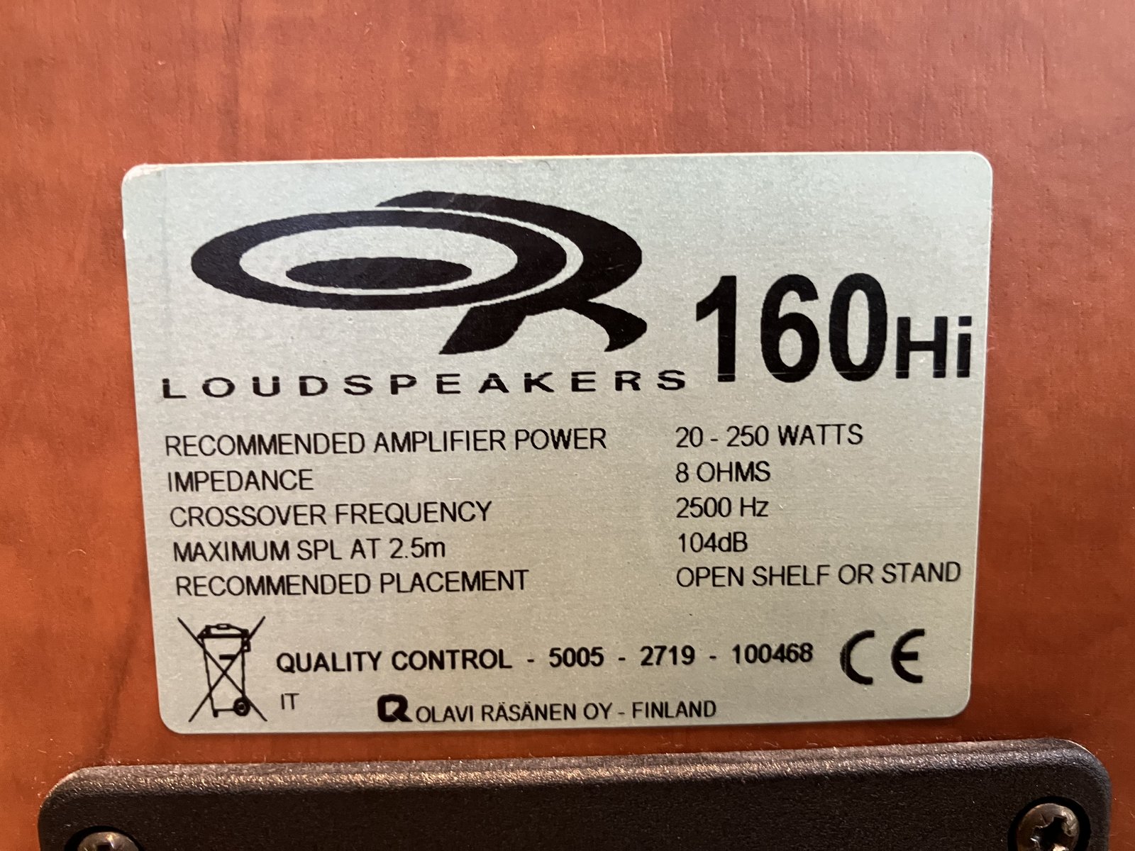 Myydään jo vintageikää olevat OR 160Hi kaiuttimet. Valmistettu käsittääkseni joskus vuosituhannen vaihteessa (tai hieman aiemmin) Mikkelissä Olavi Räsäsellä. Tekniikan maailman testivoittaja 2002. Erinomaisessa siitissä kunnossa, hyvin vähän minkäänlaista käytönjälkeä. Pituus 34cm, leveys 22cm, korkeus 38cm. Muut speksit kuvassa/tarrassa kaiuttimen takaa. Kaiuttimien alle mukaan mustat valurautaiset ja erittäin tukevat jalustat - korkeus 39,5cm ja halkaisija 19cm. Nouto Mikkelistä. Hinta: 250 € | |