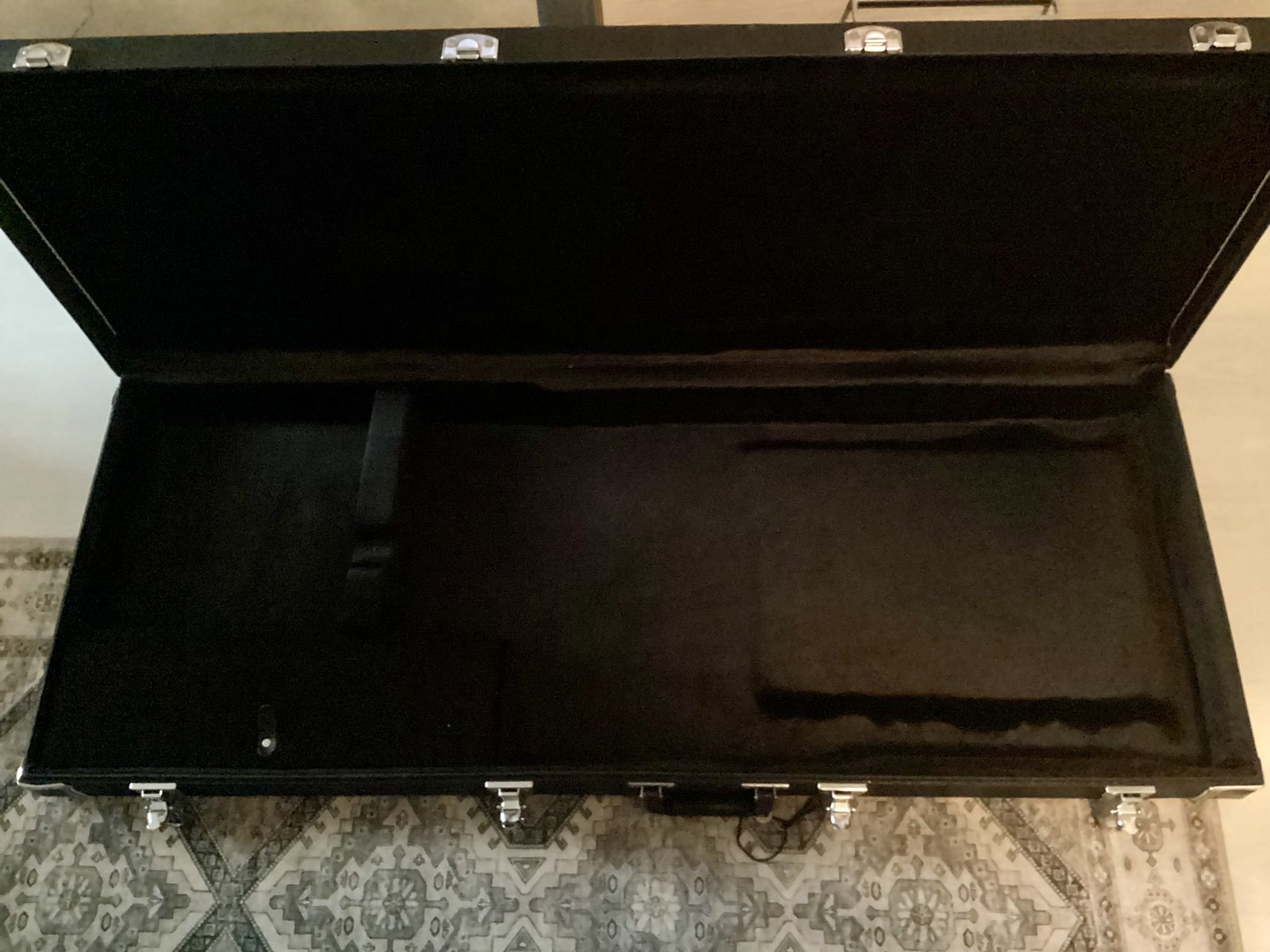 Hiukan isompi kitaralaukku, johon mahtuu erikoisemmatkin kitarat (Flying V, Jazzmaster, Jaguar, Firebird jne) Kyllä tuohon bassokin mahtuu Sisämitat 116 x 43 x 10 cm Ei roudattu, kolhuton, naarmuton, uutta vastaava. Avaimet mukana. Bassolaukku antamassa mittasuhteita, ei myynnissä Mielellään nouto. Hinta: 120 € | |