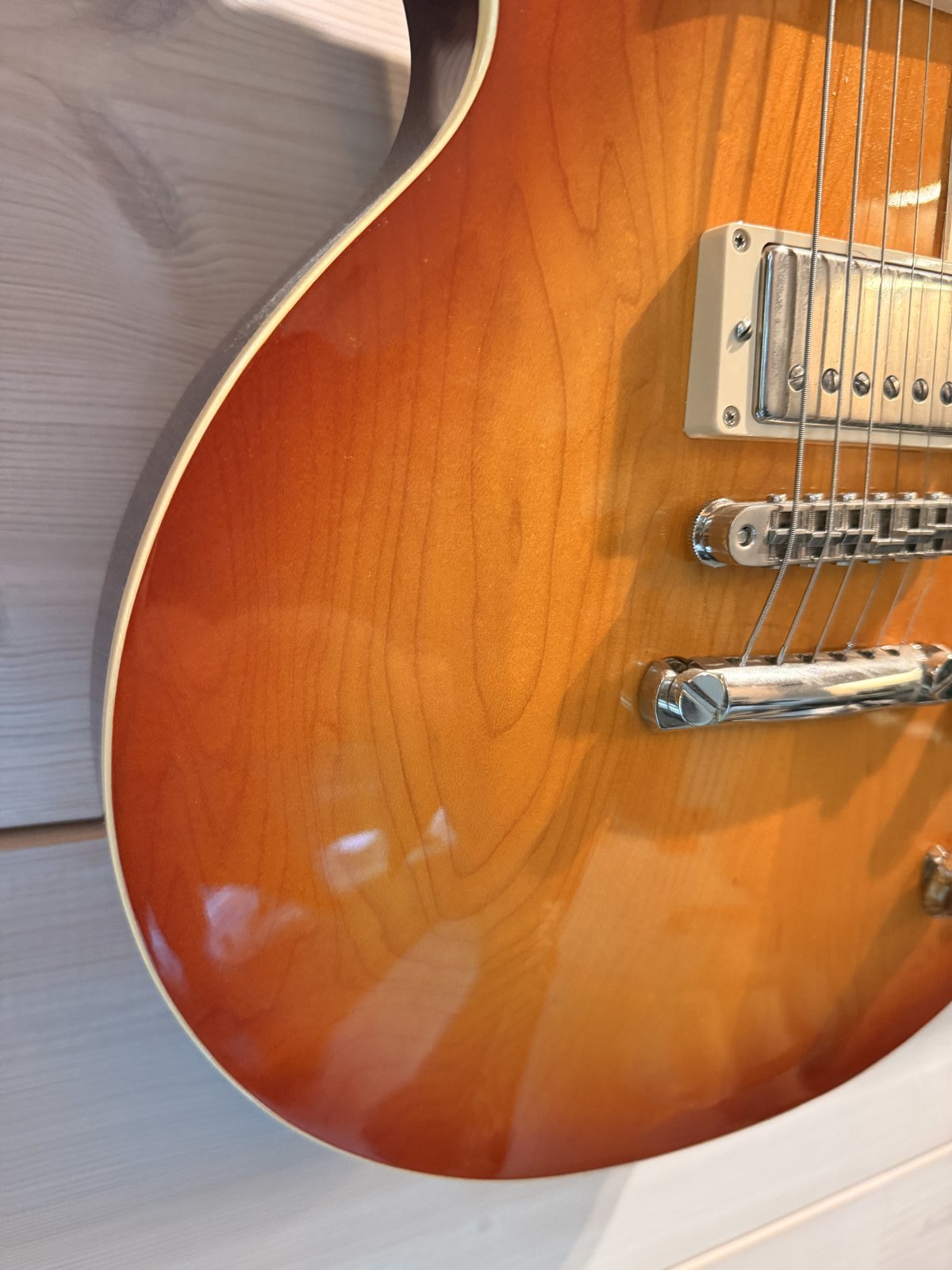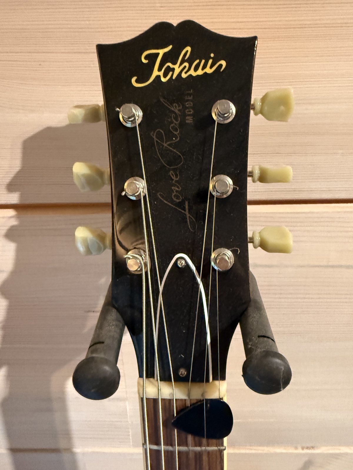 Tokai LS-160 Violin Finish Myydään lähes uutta vastaava Japanissa käsityönä valmistettu Tokai Premium Series LS-160. Erinomainen versio vintage Gibson Les Paul Standardista. Mukana aitoustodistus. Vm. 2021. Kitaran runko on tehty yhden palan mahongista. Kansi on kahden palan vaahteraa ja kaulana on yhden palan mahonki syvällä liitoksella. Otelauta on ruusupuuta. Mikkeinä PAF-tyyliset Seymour Duncan 59 Model humbuckerit. Ominaisuudet-> Runko: Yhden palan mahonki Kansi: Kahden palan vaahtera Kaula: Yhden palan mahonki, ”set-neck deep joint” Skaala: 24.75" Otelauta: Ruusupuu Radius: 300R Nauhat: 22 Talla: HLS-VB Brass Saddle Bridge, HLS-VT Aluminum TailPiece Virittimet: Gotoh SD90-SL Tallamikrofoni: Seymour Duncan SH-1B 59 Model, kromikuorella Kaulamikrofoni: Seymour Duncan SH-1N 59 Model, kromikuorella Elektroniikka: 2x volume, 2x tone, 3-asentoinen kytkin, Sprague Orange Drop kondensaattorit, Switchcraft-jakki Kielet: 10-46 Upotukset: Dish Amber Cell Plektrasuoja: 1-kerros kerma Reunanauhat: Kermanväriset Metalliosien väri: Kromi Väri: Violin Finish Viimeistely: Nitrolakkaus Hinta: 1290 € | |