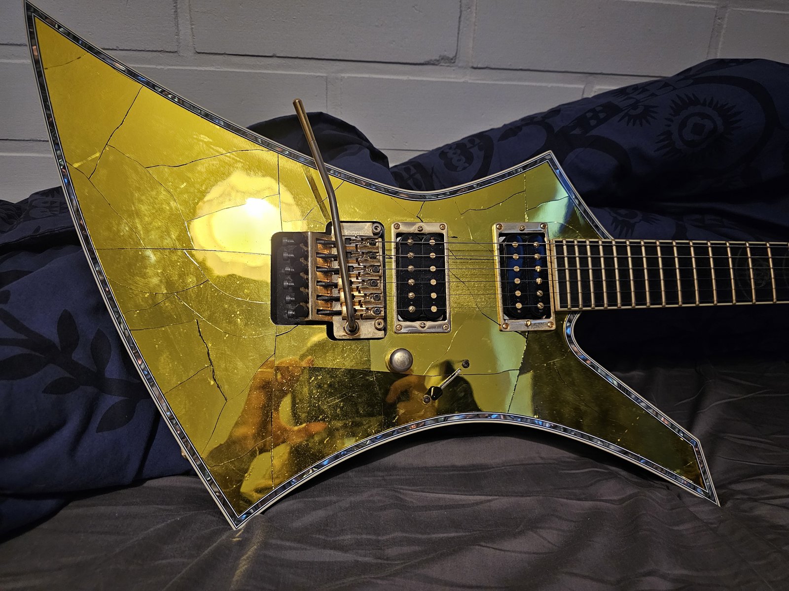 Kulta cracked mirror pleksi BKP miracle man mikit 25.5 skaala 24 gold evo junbo nauhaa 3 osainen vaahtera hiilikuitu vahvistettu kaula Leppä body Gotoh floikka jossa tremolno kiinni Hinta: 2900 € | |