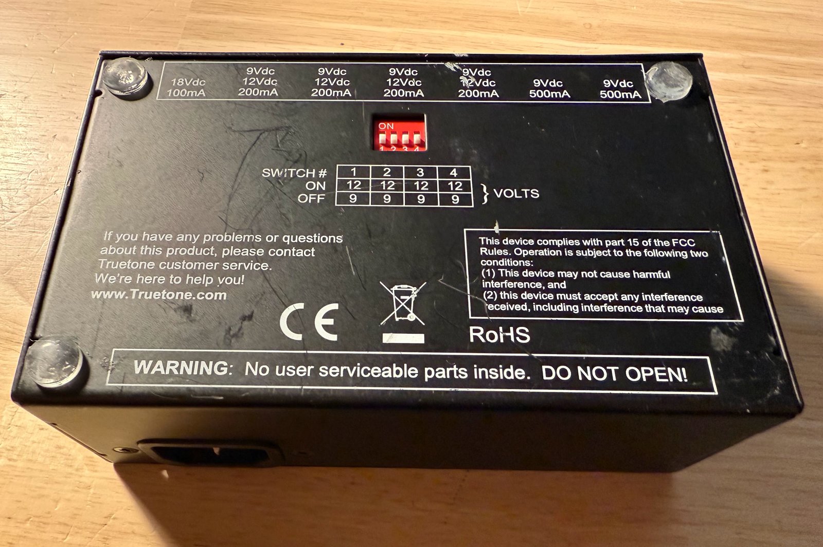Erittäin pätevä virtalähde pedaalilautaan. 9V/12V - 2x500mA, 4x200mA ja 18V/100mA. Piuhoja löytyy mukaan, mutta alkuperäisistä en ole varma. Kulkeutuu pk-seudulla tai postiin niin sovittaessa. Hinta: 100 € | |