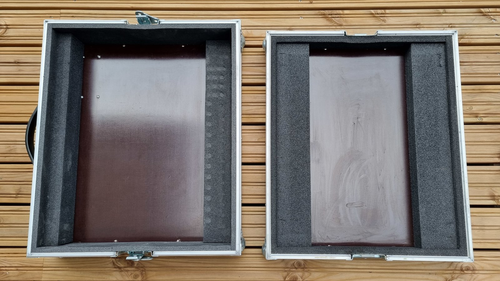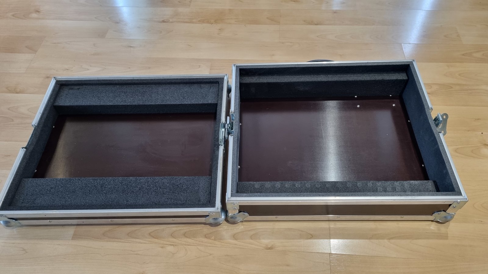 Hyvässä kunnossa oleva kuljetuscase. Käytetty Souncraftin pikkumikserillä. Irroitettava kansi, pehmustettu ja perhoslukot hyvin toimivat. Ulkomitat noin 45 x 53 x 17 Sisämitat noin 41 x 49 x 15 Paino 6,8kg Hinta: 50 € | |