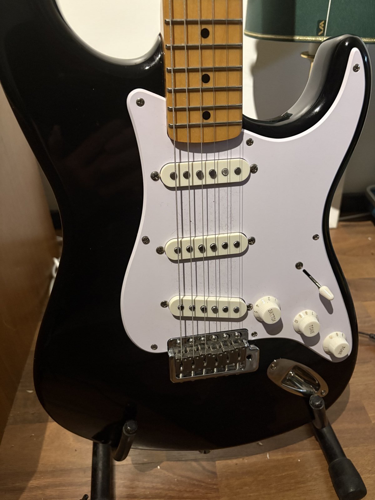 Myydään/vahdetaan strato. Vaihdossa käy Kombo vahvistin? Liian monta kitaraa niin jostain pitää luopua, Kitaraan on vaihdettu Wilkinson terästalla raskaalla blokilla (alkuperäinen peltinen ja rimpula. Pitää vireen ja muutenki kelpo soitin Soitin on suht uusi ja kolhuton vm.25 Hp. 250¤ Hinta: 250 € | |