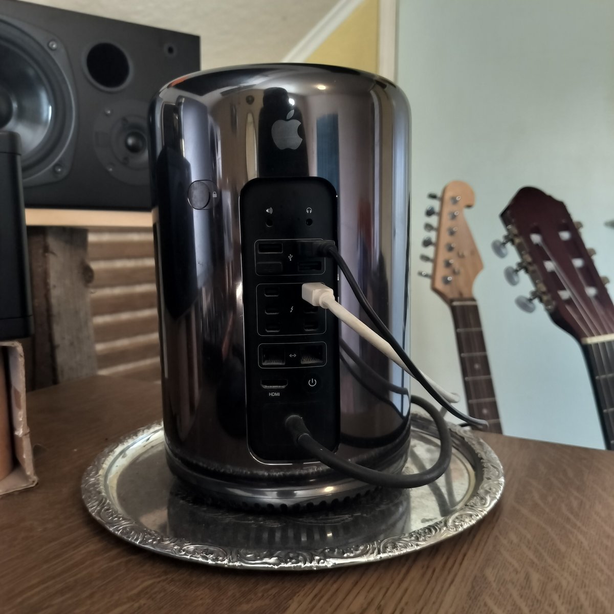 Myyn hyväkuntoisen Mac Pro sylinteri-malli, Late 2013). Xeon E5, 12-core 2.7 GHz Laite on tehokkain kokoonpano tästä mallista joka oli silloin saatavilla. 64 GB RAM Dual AMD FirePro D700 (2 × 6 GB VRAM) 1 TB SSD macOS Monterey Mukana virtajohto ja alkuperäinen boksi sekä ohjekirja. Hiljainen, siisti ja luotettava. Käytetty studioympäristössä. Toimii erinomaisesti musiikki- ja videotuotannossa sekä raskaassa moniajossa. Tämän kohdalla nyt ainoastaan nouto eli se saa tästä hyvän koneen tarjous hintaan joka ehtii ensimmäisenä. Hinta: 350¤ / Tarjous Hinta: 350 € | |