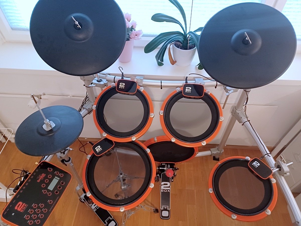 2Box Drumit Five sähkörummut - todella pehmeät ja äänettömät mesh kalvot - virveli 14"/mesh alue 12", tomit 12"/mesh alue 10" - bassaripädi räkissä, ei lattiassa, huippuhyvä mm kerrostaloon - myös pedaalien pohjissa todella paksut ja eristävät kumit - symbaalit 12", 14", 14"ja 360 asteinen soittoalue - symbaalit paksua pehmeää kumia ja keinuvat mallit - jalaton hihat teline, hienosti integroitu, koko hihat yhdellä johdolla - pädit 2-3 alueisia, symbaaleissa sammutukset, jne - uloslähtöjä jopa 6, äänet kerralla useampaan paikkaan - parista tomista on vähän reunarimmi osittain irti, ei juuri vaikutusta Manuaali: https://2box-drums.com/wp-content/u … /05/DrumIt_Five_Manual_1_2x_eng.pdf . nouto/puh 12.30-21 Pajamäki 0505304460 käteinen, mobilepay Hinta: 500 € | |