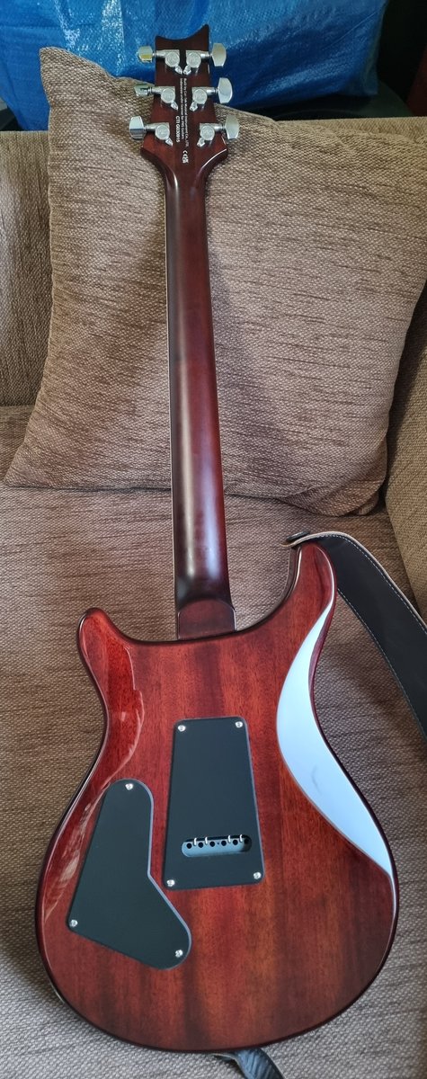 Kaulassa satiini viimeistely, mikeissä cromikuoret ja potikoiden nupit vaihdettu Core malliston Lampshade mallisiin. Kitara on huollettu ja säädetty 10-46:lle, ei naarmuja eikä kolhuja. Mahonkirunko violin carve PRS vibrar talla Tobacco Sunburst Vaahtera kaula, Wide Thin, 25", säde 10", 24 nauhaa TCI "S" mikit Volume, Tone, 3-tie Toggle mikki-kytkin, 2x Mini-Toggle Coil-Split kytkimet. PRS Virittimet Nikkeli Hardware Alkuperäinen PRS SE Gig Bag Hinta: 500 € | |