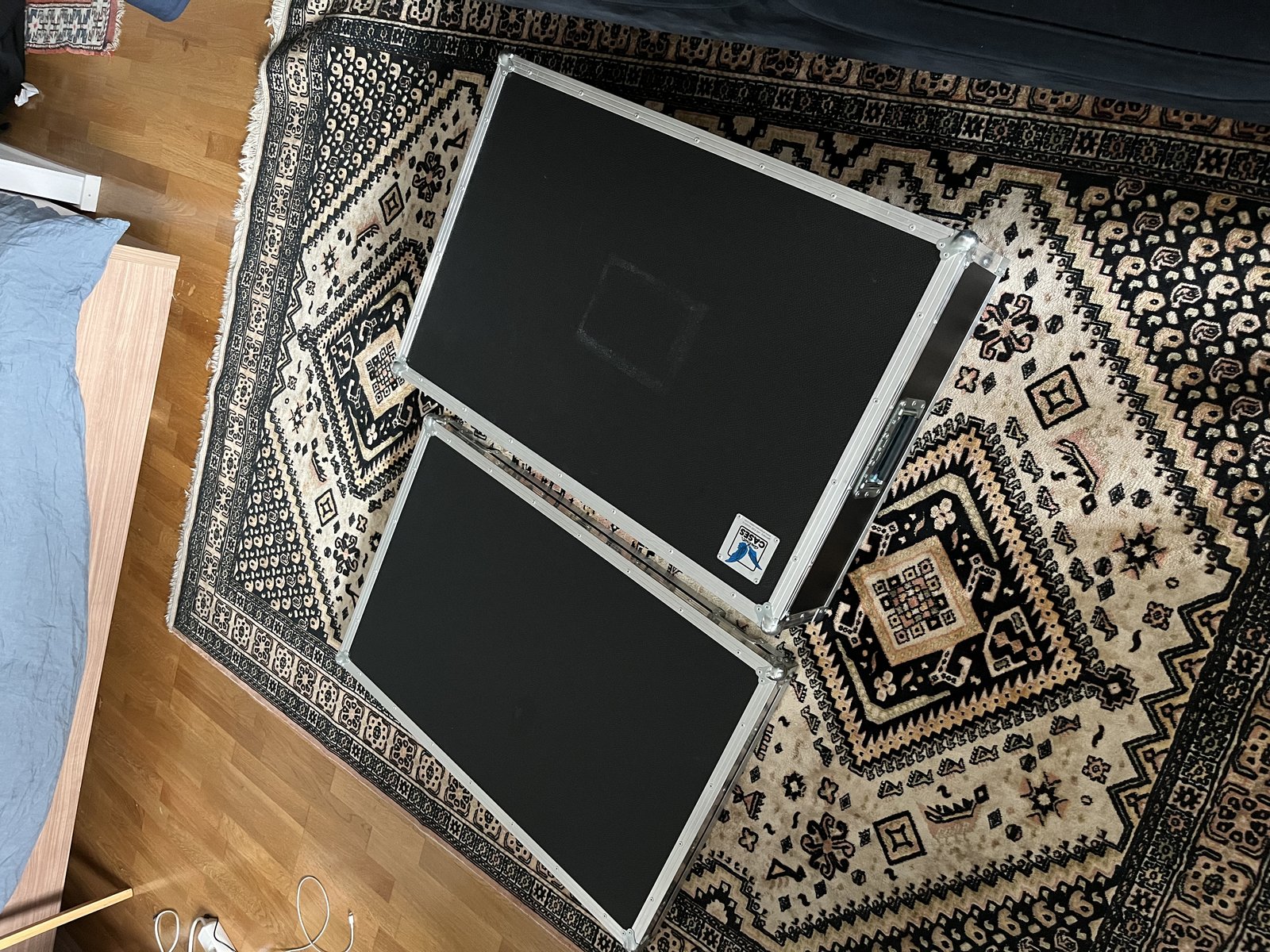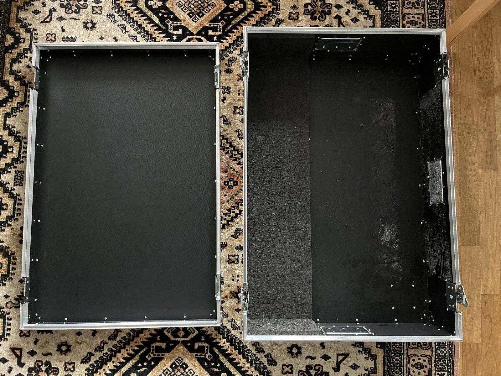 Myydään alunperin MA dot 2 flight case. Suurin osa sisäpehmusteista poistettu. Ulkomitat 23.5 x 87.0 x 58.5cm Toisen puolen butterfly lukitukset ovat vähän vääntyneet ja tarvitsevat toista kättä työntämään niitä kiinni sulkiessa. Muuten toimii kuten pitäisi. Parhaiten saa kiini whatsappilla Hinta: 80 € | |