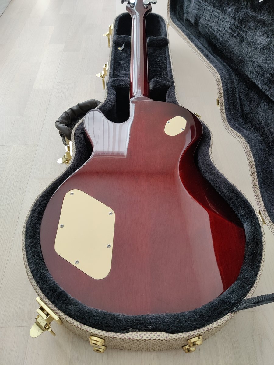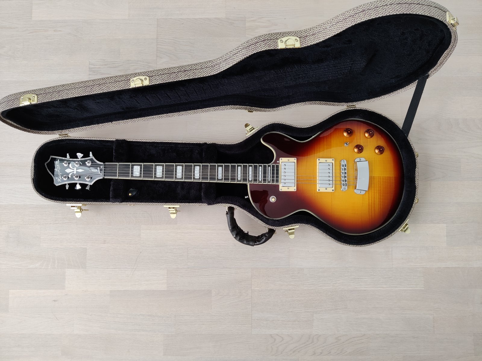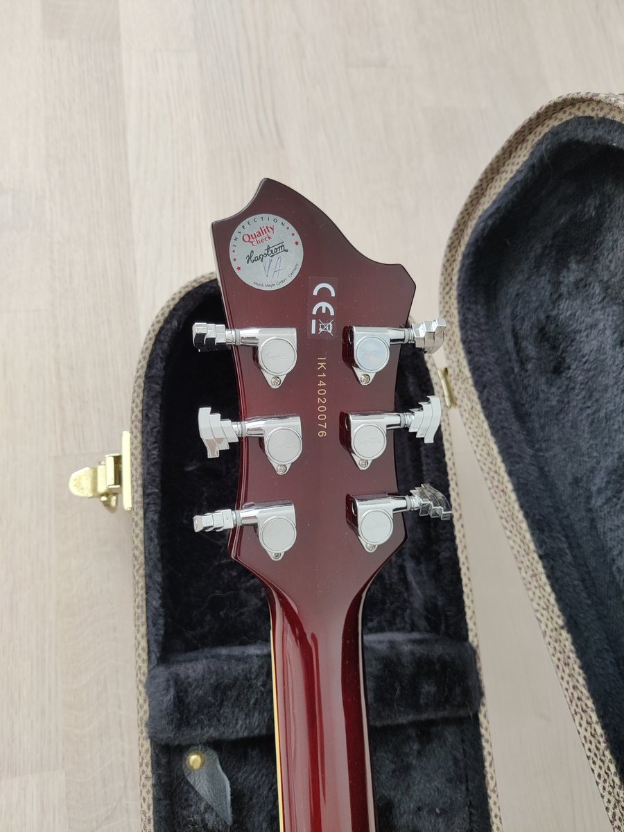 Kitara ja kotelo ostettu uutena 12/2014 ja ovat olleet vaihtelevan aktiivisessa kotikäytössä siitä lähtien. Kotelo on mallia Hagstrom Case C51 Swede. Kotelon kantokahvan tekonahka on alkanut odotettavasti vähän irtoilemaan, mutta ongelma on vain kosmeettinen. Kotelon avaimella käytettävä lukko ei toimi, eli kotelon saa kyllä suljettua kiinni, mutta ei lukittua (huom. pysyy kyllä kiinni, mutta ei lukossa :)). Itse kitara on hyvässä kunnossa. Pientä käytön jälkeä ehkä löytyy, onhan kitaraa kuitenkin vuosien mittaan soiteltu. Käsitelty ns. silkkihansikkain. Asennettu Schaller hihnalukot, mutta alkuperäiset tapit tulevat mukana. Kitaran plektrasuoja on irrotettu, mutta alkuperäinen tulee mukana joten sen voi halutessaan kiinnittää takaisin. Hinta: 500 € | |