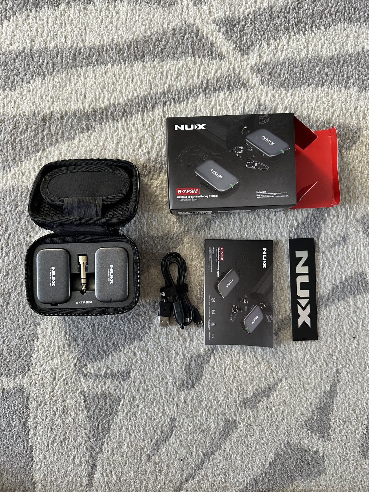 NUX B-7PSM Digitaalinen langaton in-ear monitor stereo Itseltä jäänyt käyttämättömäksi, kun tuli hommattua räkkimallin langaton iem Akku kestää todella hyvin ja kätevän latauskotelon ansiosta lisävirtaa saa nopeasti 5,8Ghz 24bit stereo Taajuusvaste: 20 Hz – 19 kHz Lähetin (TX) 3,5mm stereoliittimellä (mukana 6,3mm adapteri) Vastaanotin (RX) 3,5mm kuulokeliitännällä Langaton latauskotelo USB-C -latauskaapeli Hinta: 120 € | |