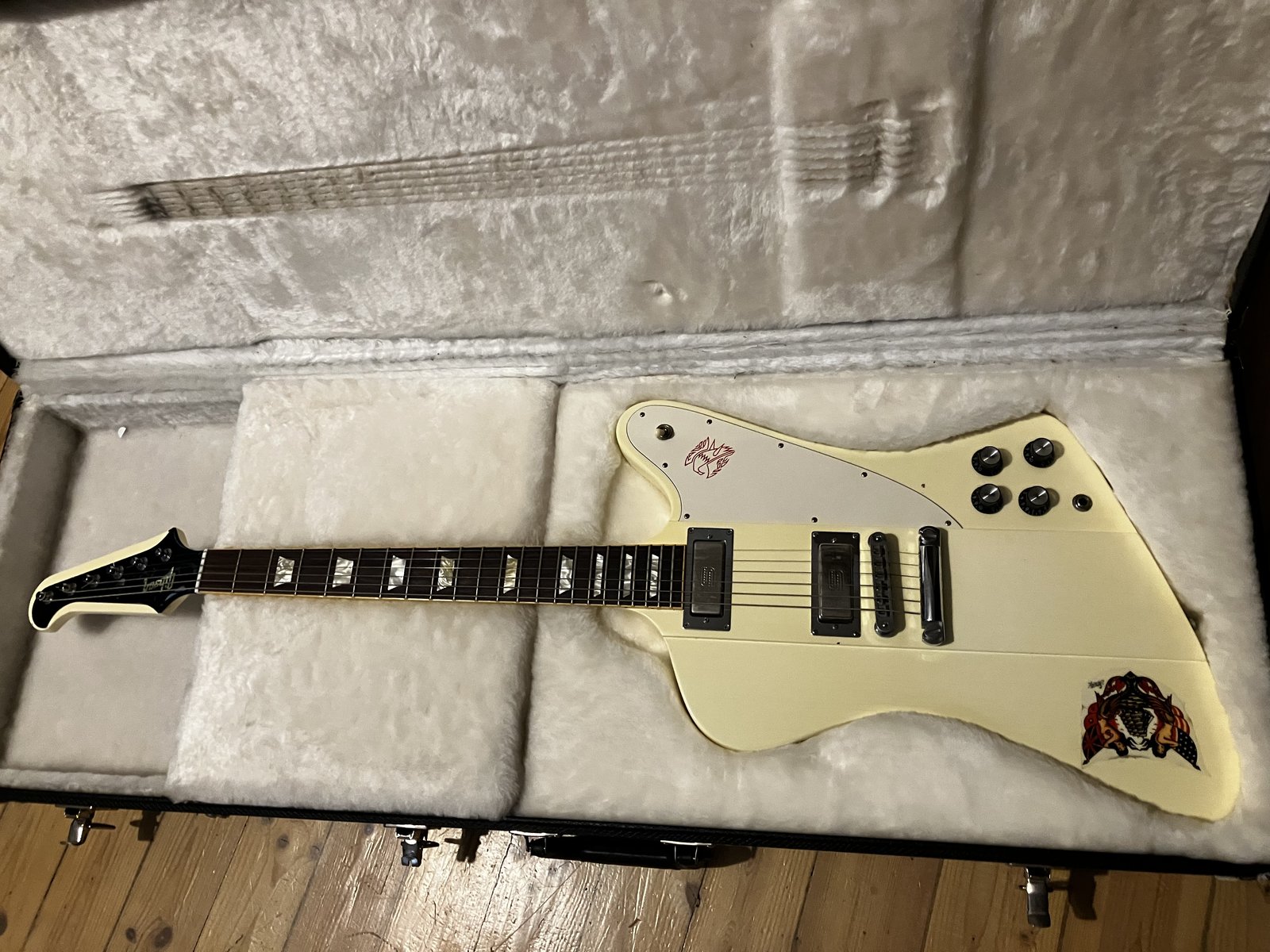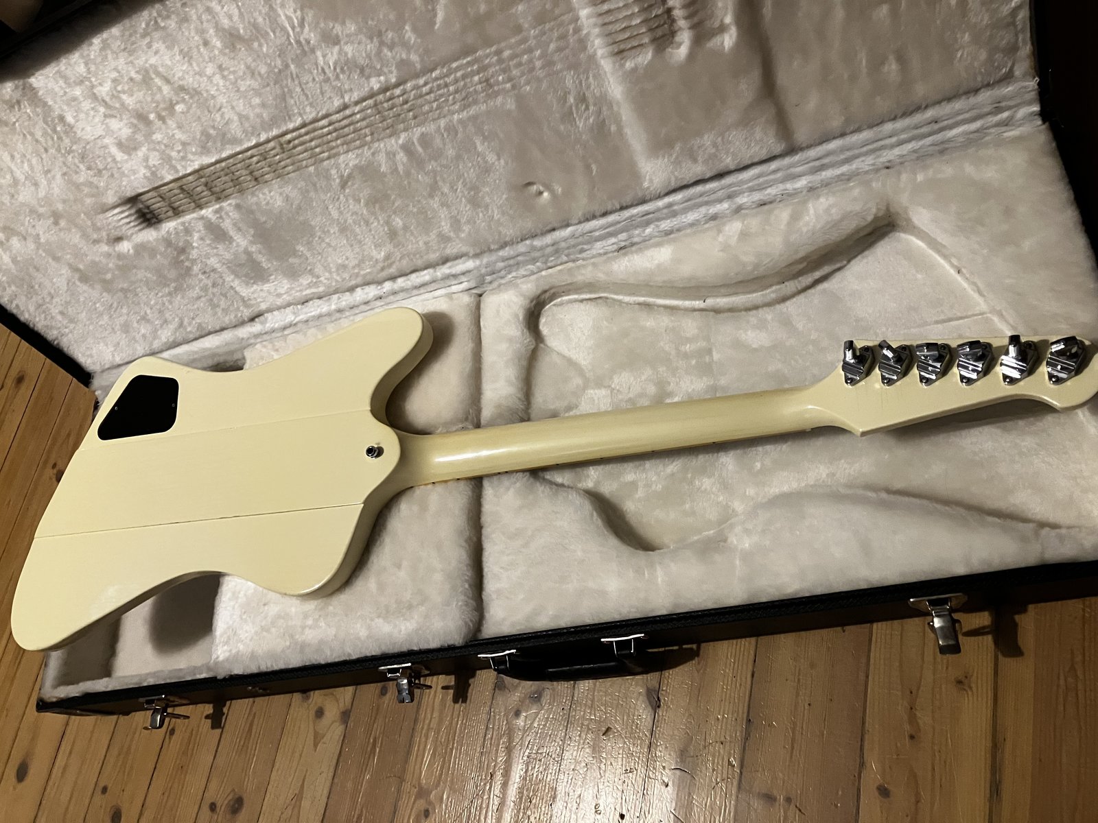Yhdestä palasta tehty mahonkirunkoinen Firebird minihumppareilla. Soi hienosti, pitää vireen ja on hyvä työkalu. Käytön jälkiä on ja se on huomioitu hinnassa. Testausmahdollisuus on Helsingissä. En lähetä kitaraa mihinkään eli vain noutamalla kaupat. Mukaan tulee Gibsonin kova laukku. Vaihdossa voi ehdottaa Fenderin Telecasteria, välirahan kera. Hinta: 1600 € | |