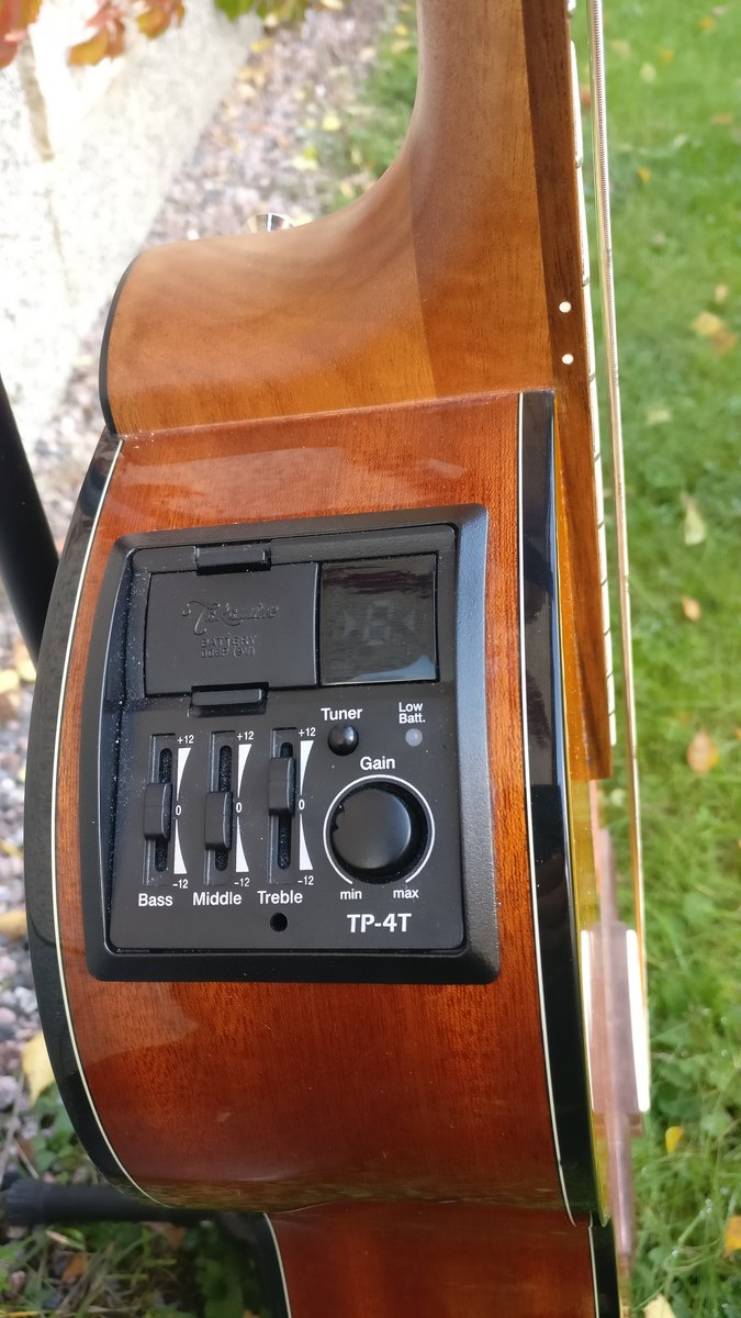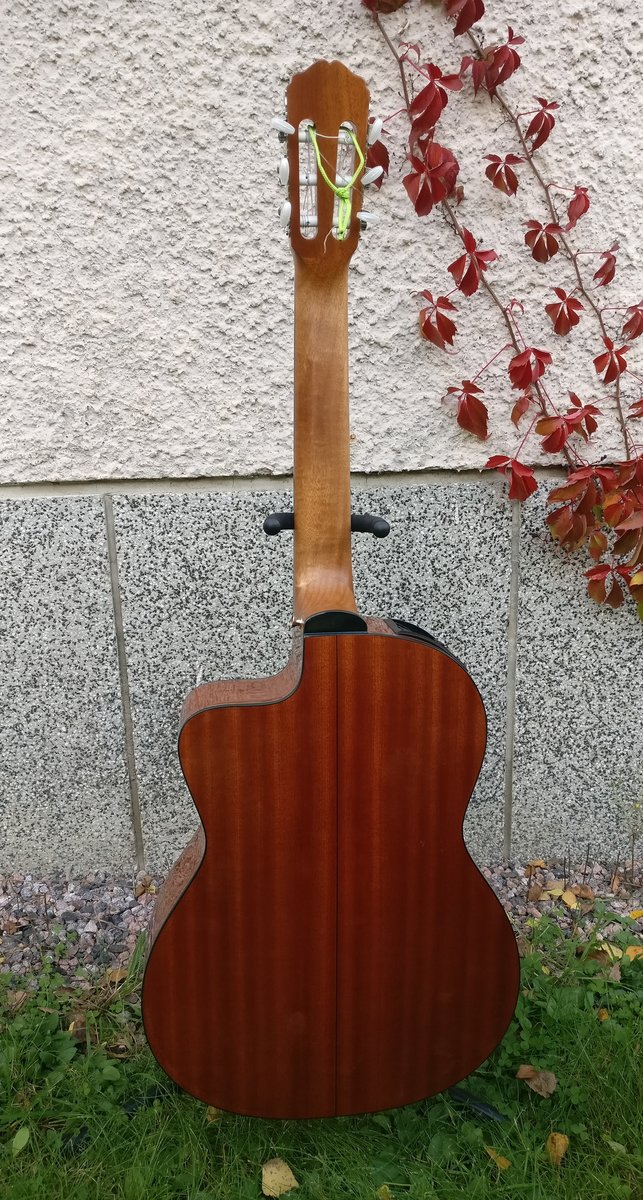 Myydään klassinen kitara Takamine GC3CE-NAT. Kitarassa tallamikki sekä säädettävä kaularauta. Hihnatapin olen itse asentanut. Kokopuinen kuusikansi, sivut ja pohja mahonkia. Soittimeen valikoidut puut näyttävät korkealaatuisilta. Nyt kitarassa kiinni D'Addario Dynacore NT -kielet. Normaalipaksuiset titanium kielet siis, jotka olen testailun tuloksena todennut tähän kitaraan sopivaksi. Soittimen kunto on lähes uudenveroinen. Thomannilla vastaavan hinta 433¤. Testit sekä akustisena että vahvistettuna onnistuu Helsingin Maunulassa. Hintapyynti on tämä, ja ensisijaisesti vaihtuu rahaan, mutta vaihtoja klassiseen tai flamencokitaraankin kyllä kuunnellaan. Hinta: 270 € | |
