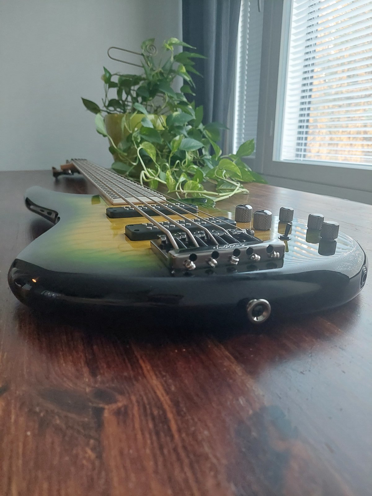Kaikinpuolin hyväkuntoinen viisikielinen. Itsellä pelkässä kotisoitossa ollut hetken aikaa. Ei bassolle ollutkaan tarvetta, joten joutaa toiselle. Vaihdossa voi ehdottaa kitara/musiikkikamaa laajastikkin. Thomannin ohkasen kassin saa tarvittaessa mukaan. Testit ja nouto Oulussa. Pikaviestejä luen. Hinta: 370 € | |