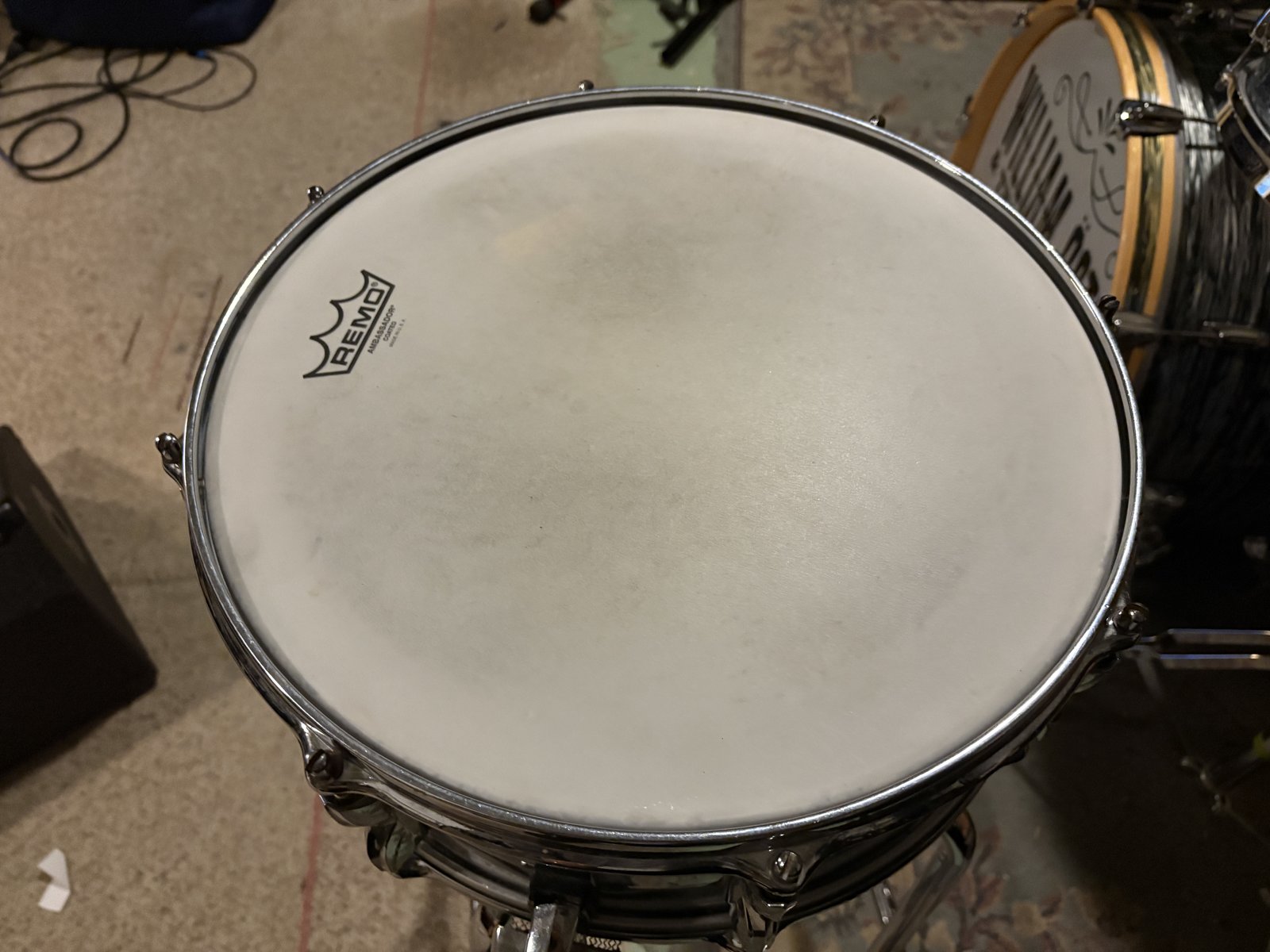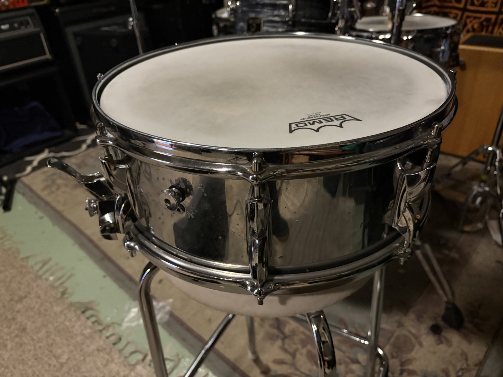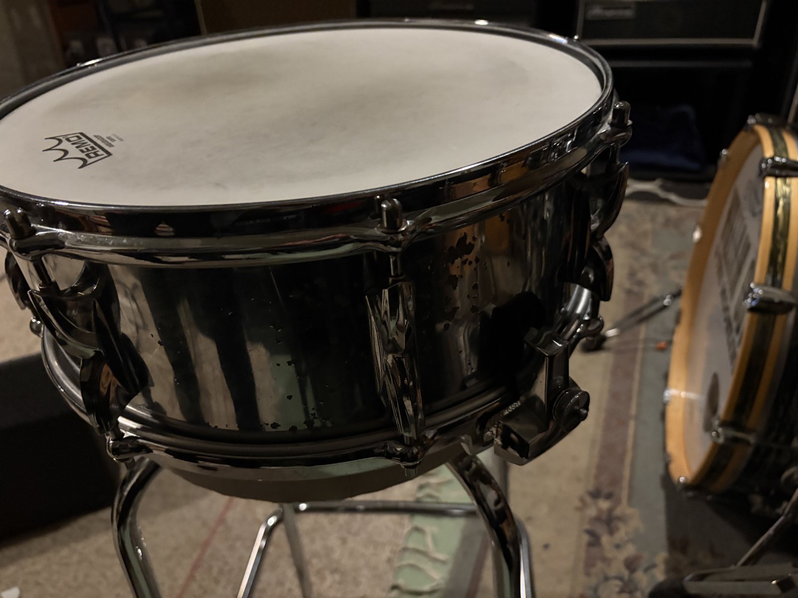 Loistava 70luvun supraphonic tyyppinen Premier 2000 alumiini snare. Suht uudet kalvot. Alkuperäinen matto josta muutama naru puuttuu. Pitting on normaalia näissä eikä vaikuta saundiin! Vaihdossa vois mennä puuvirveli, joku yleis ride tai huippu basarin pedaali kuten dw9000. Hinta: 190 € | |