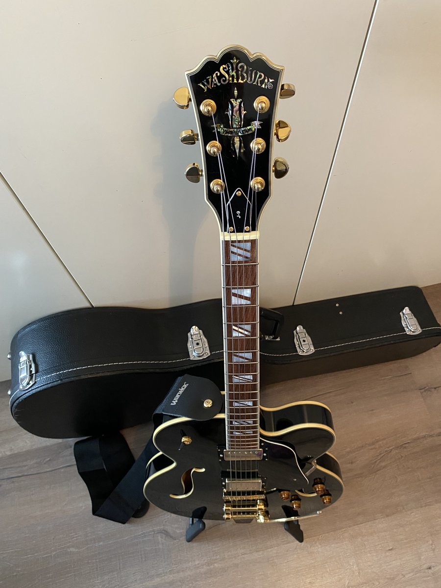 Laadukas ja erinomaisessa kunnossa oleva Washburn J-9, joka on juuri huollatettu ammattilaisella. Hyvissä säädöissä ja todella kevyt soittaa 11-sarjan hiotuilla kielillä (paremmissa säädöissä kuin uusi kitara). Kaikki toimii. Sopii genreen: jazz, blues, rock jne. Kaula/Otelauta: mensuuri 25 1/2'' 648 mm, 20 nauhaa, yhdistetty 14. nauhan kohdalta. Vaahterarunko ja -kaula, ABS IVI.5/B0.5/IV0.5/B0.5 kaulareunus, otelaudan säde 320 mm, ruusupuuotelauta. Värillinen/kirkas/kiiltäväpintainenkansi, värillinen/kirkas/kiiltäväpintainen kaula. Mekanismitat: ruusupuutalla, kullanvärinen tune-o-matic tallamikki, kullanvärinen takapidike, 621 ja 1702 humbucker (kullanvärinen) kaulamikki, 622 ja 1702 humbucker (kullanvärinen) tallamikki, 3-asentoinen DPDT-kytkin, kullanvärinen Grover-tyylinen virityskoneisto. Mukaan kova laukku ja musta leveä hihna. Nouto tai toriDiili (lähetys noin 20¤, ks ilmoitus) tai lähetys matkahuollon kautta hyvin pakattuna lähipakettina. Ei vaihtoja! Kysy tarkemmin! Tervetuloa koesoittamaan! Hinta: 680 € | |