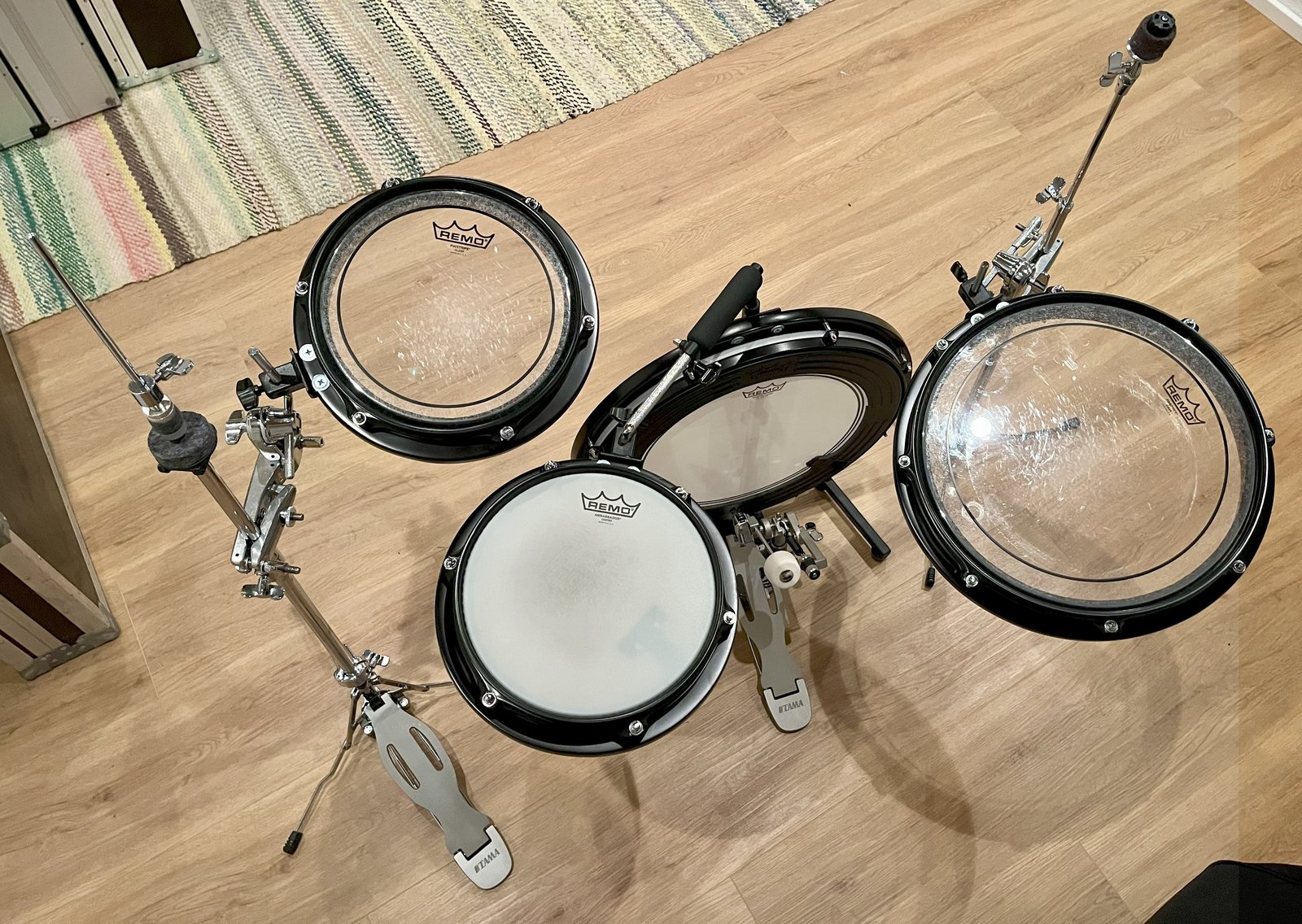 Kompakti rumpusetti – ei telineet ainoastaan rummut + clampit ja laukut. 18” Bassorumpu ja 10” Virveli + laukku 10” ja 14” tomit + laukku 2kpl Tama MC66 Multiclamp Hinta: 550 € | |