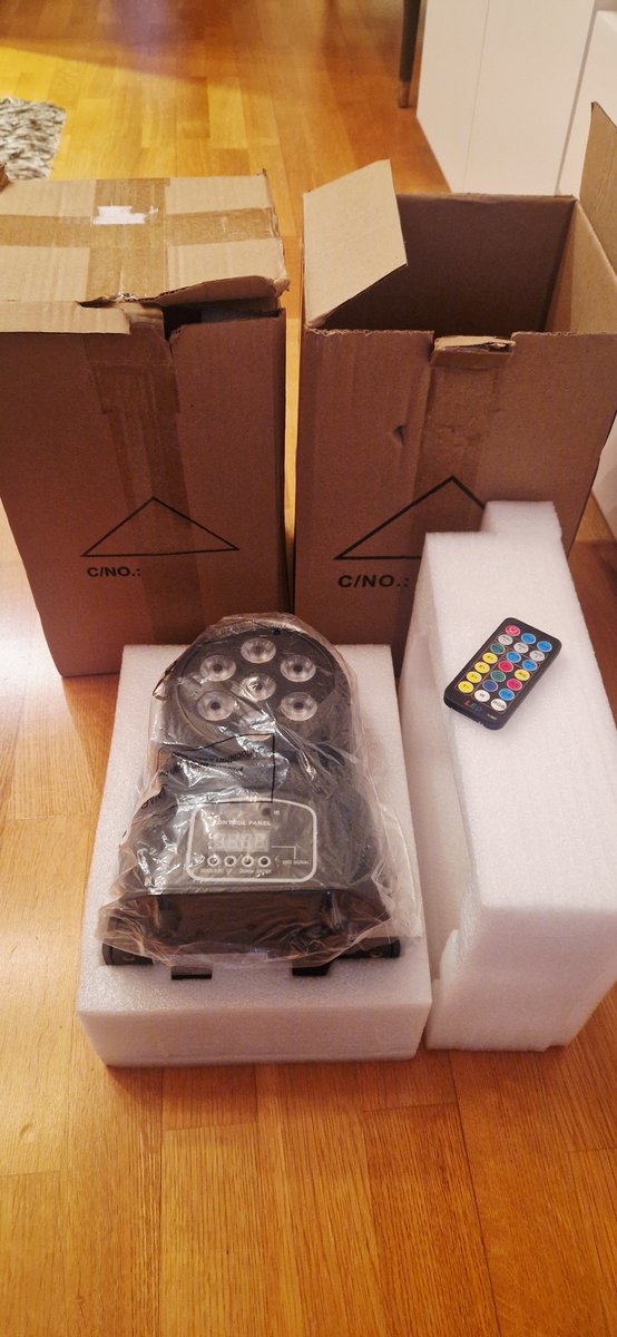 Myydään pari kertaa käytetyt RGBW moving head valaisimet alkuperäisissä laatikoissaan. 7kpl uudenaikaisia kirkkaita RGBW ledeillä. Kaikki sateenkaaren värit, dmx- ja kauko-ohjaus. Sisäänrakennettu mikki automaattiohauksella. Kytkettävissä XLR kaapelilla master/slave tilaan jolloin seuraavat toisiaan. Hinta: 80 € | |