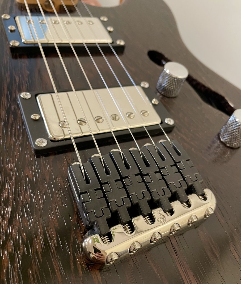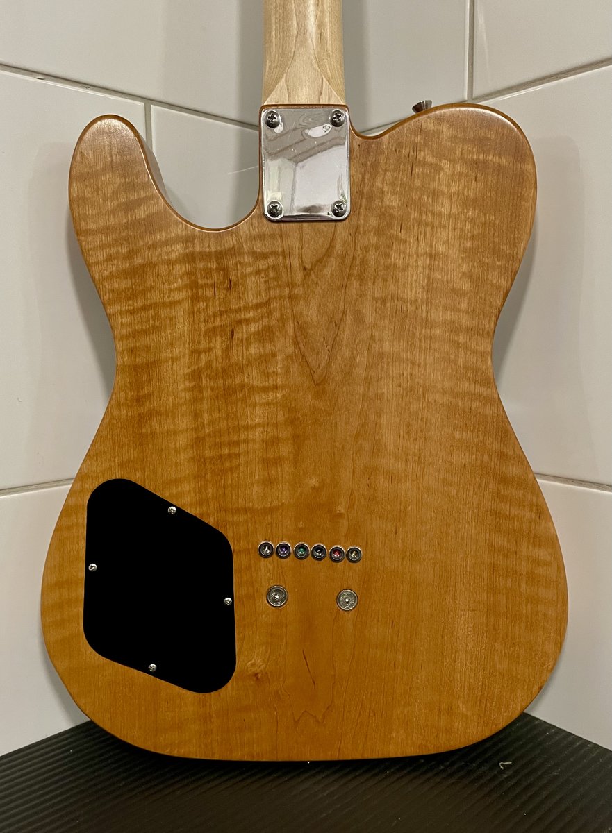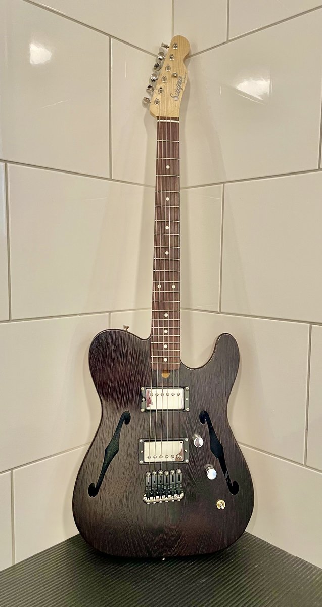 Myynnissä laadukasta Timrock Guitars-pajan tuotantoa Orivedeltä. Thinline "tele" tervaleppä bodyllä ja wenge kannella. Kitaran paino 3,0 kg Kaulamikkinä Seymour Duncan SH2 Jazz ( 8.0 kOhm) Tallamikkinä SeymourDuncan TB-14 Custom5 Trembucker (14.3 kOhm) Mikkien yhtäaikainen puolitus volapotikassa. Schallerin Hannes 6 talla Kaula Kanadan vaahteraa ruusupuu otelaudalla. Radius 9,5 tuumaa Kaulan profiili Moderni C Tästä uniikki thinline, jollaista ei tule toista vastaan. Lisätietoja: Timo Rajala P: 0400-373873 Testailemaan pääsee Orivedellä. Tervetuloa Hinta: 1100 € | |