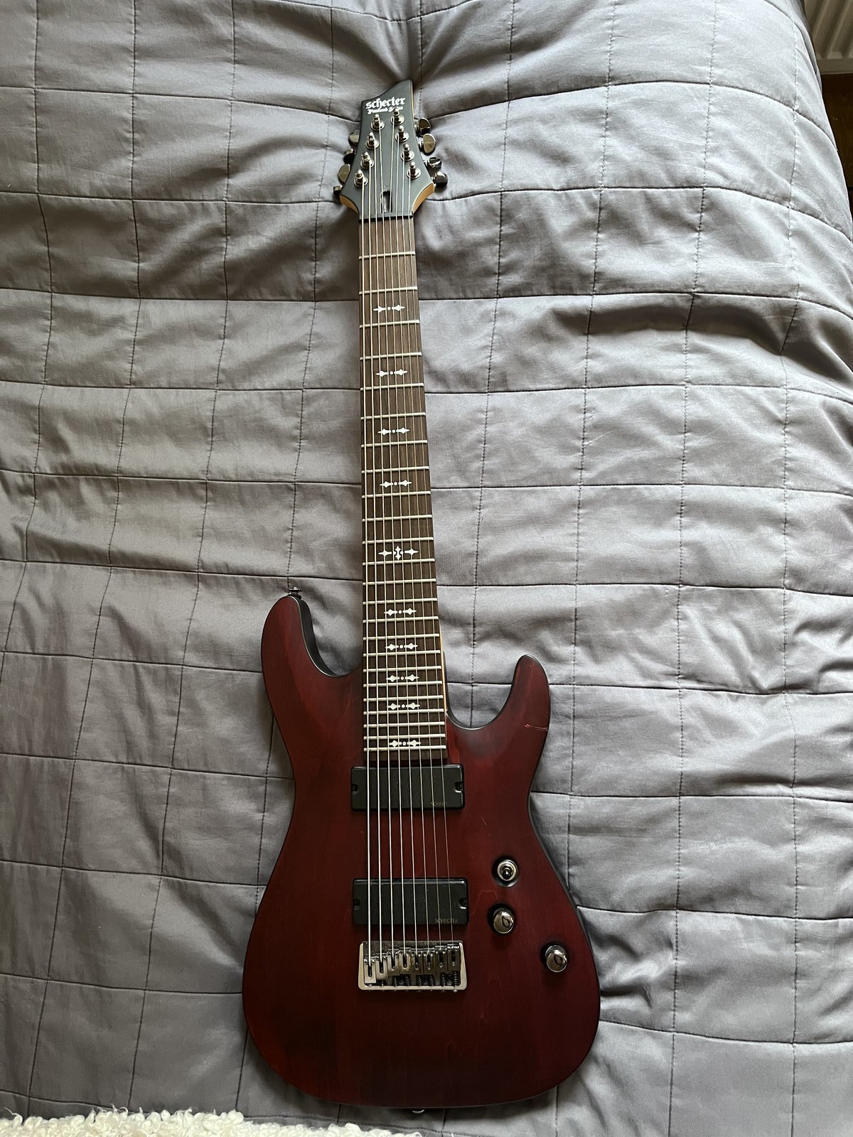 Tässä mainio kasikielinen jyntän ystävälle. Kitarasta pidetty hyvin huolta. Tällä hetkellä säädetty ammattilaisen toimesta puolikkaan sävelaskeleen verran ylöspäin normivireestä. Kitarassa on pari naarmua rungossa ja kaualraudan suojalevy on jäänyt matkan varrellle, mutta muuten erittäin soiva ja helpposoittoinen peli! Tämä on 26.5" skaalainen malli, eli ei ihan se kaikista nysäisin 25,5 joten matalatkin kielet soivat mukavalla kirkkaudella ja kielten ei tarvitse olla mitään siltavaijeria jotta saa tarpeeksi napakan tuntuman. https://www.gear4music.fi/fi/Kitara … ahkokitara-saksanpahkinasatiini/WT5 Vain nouto tai voin tuoda Tampereelle omien menojen mukana. Myynnissä myös muualla. Hinta: 450 € | |