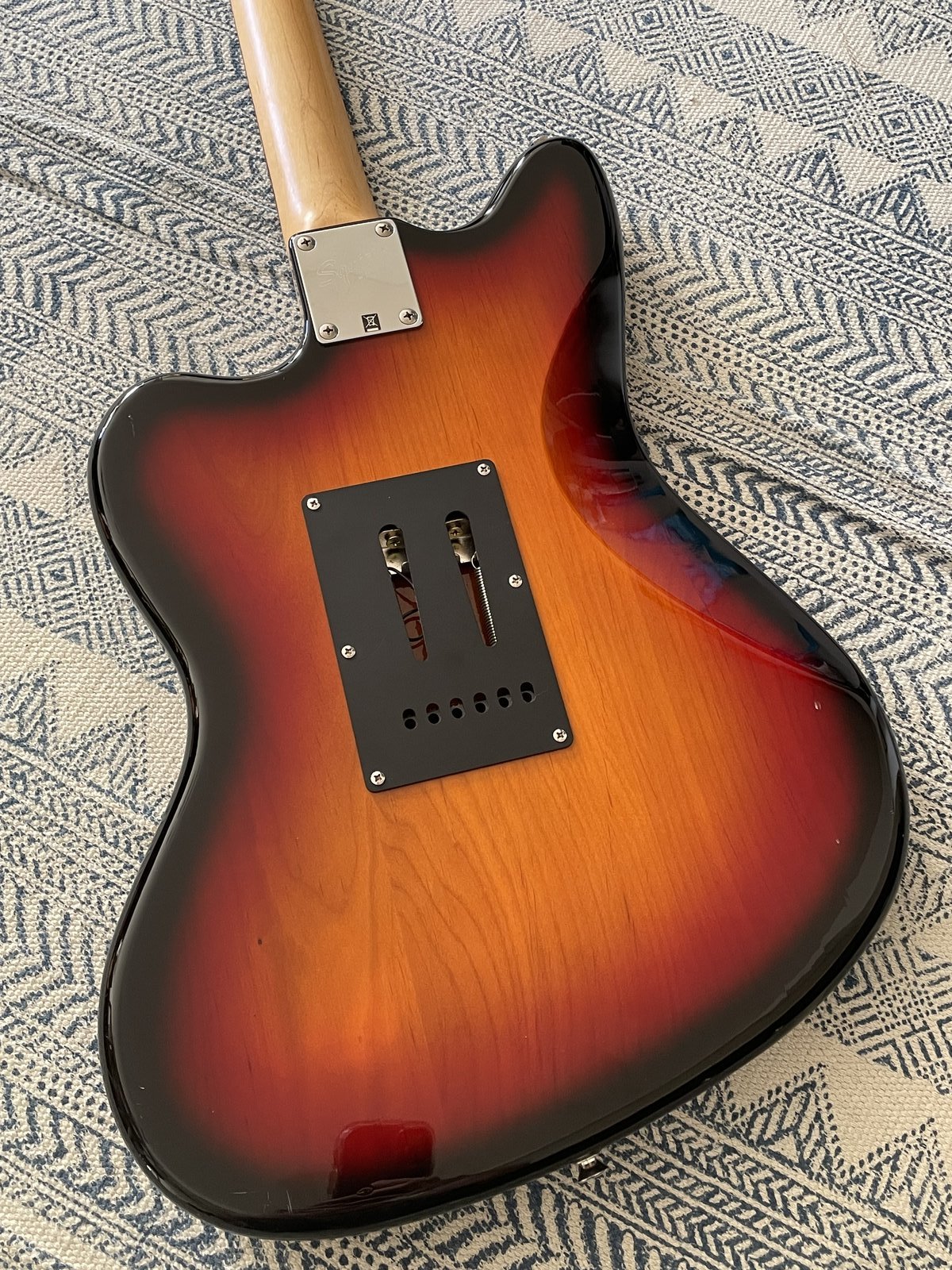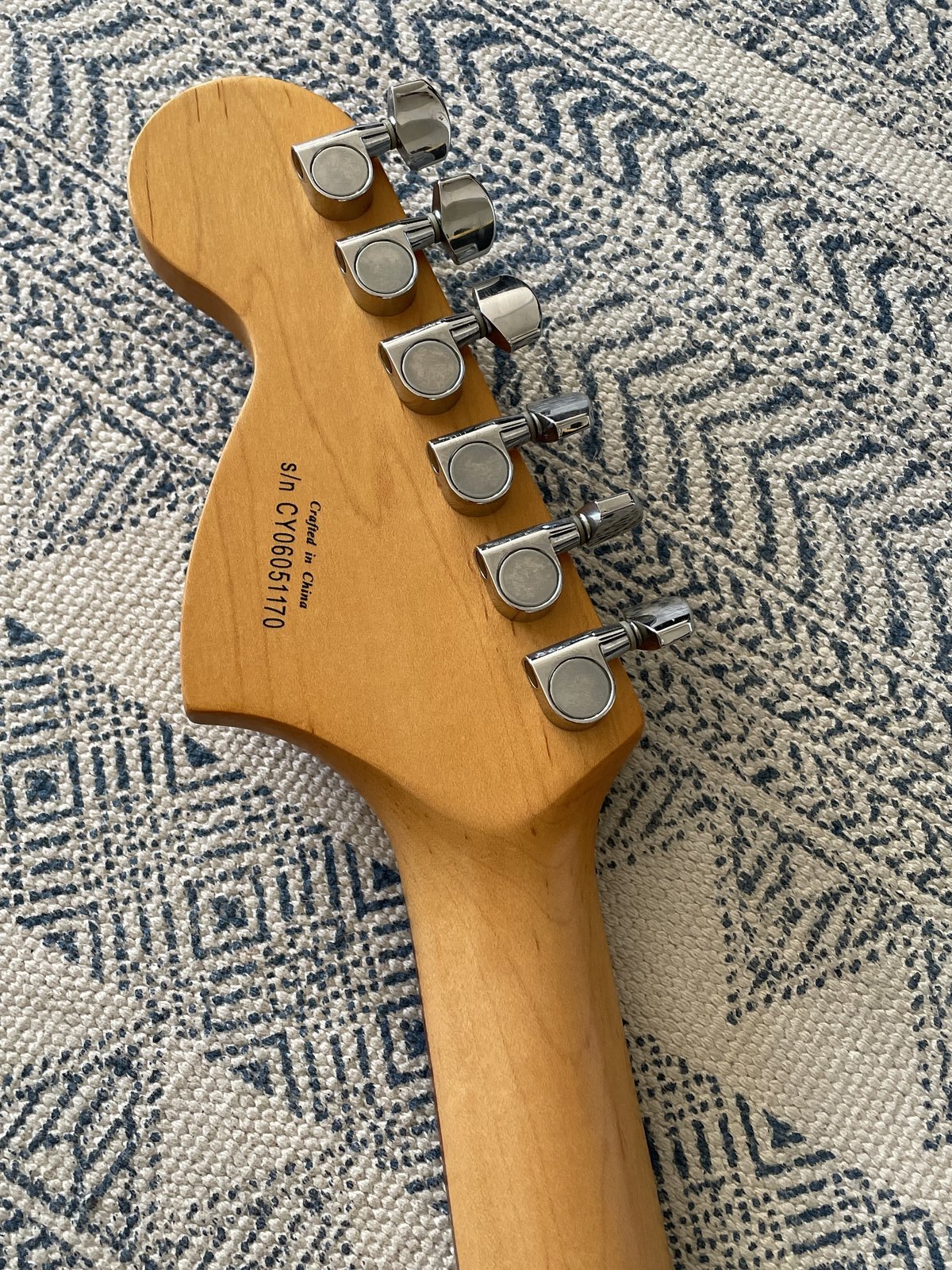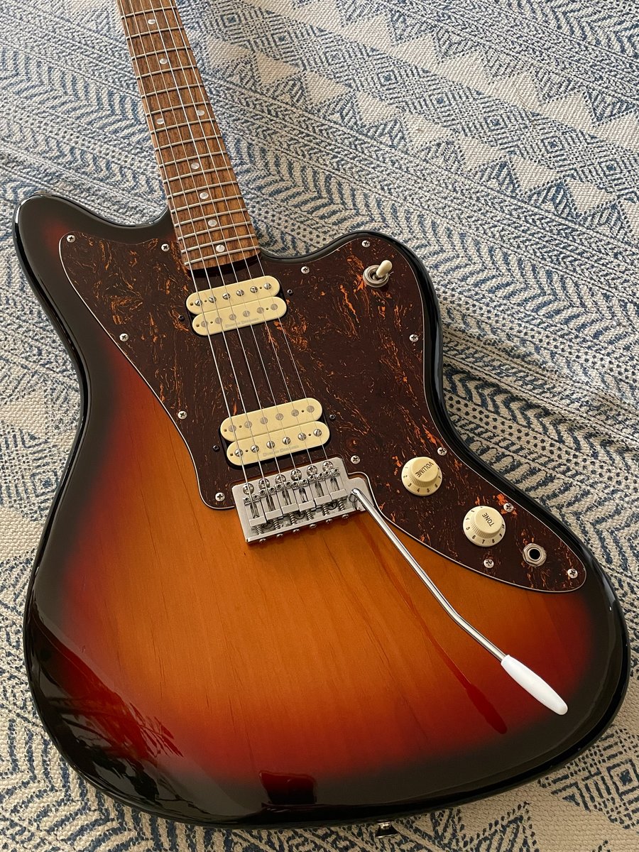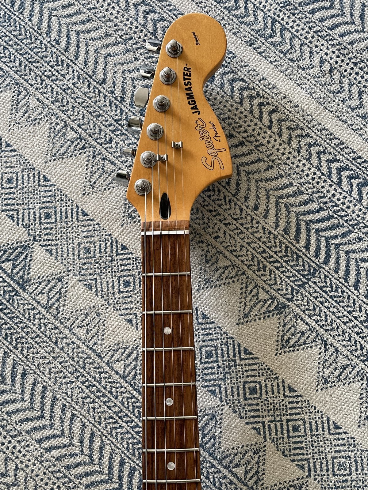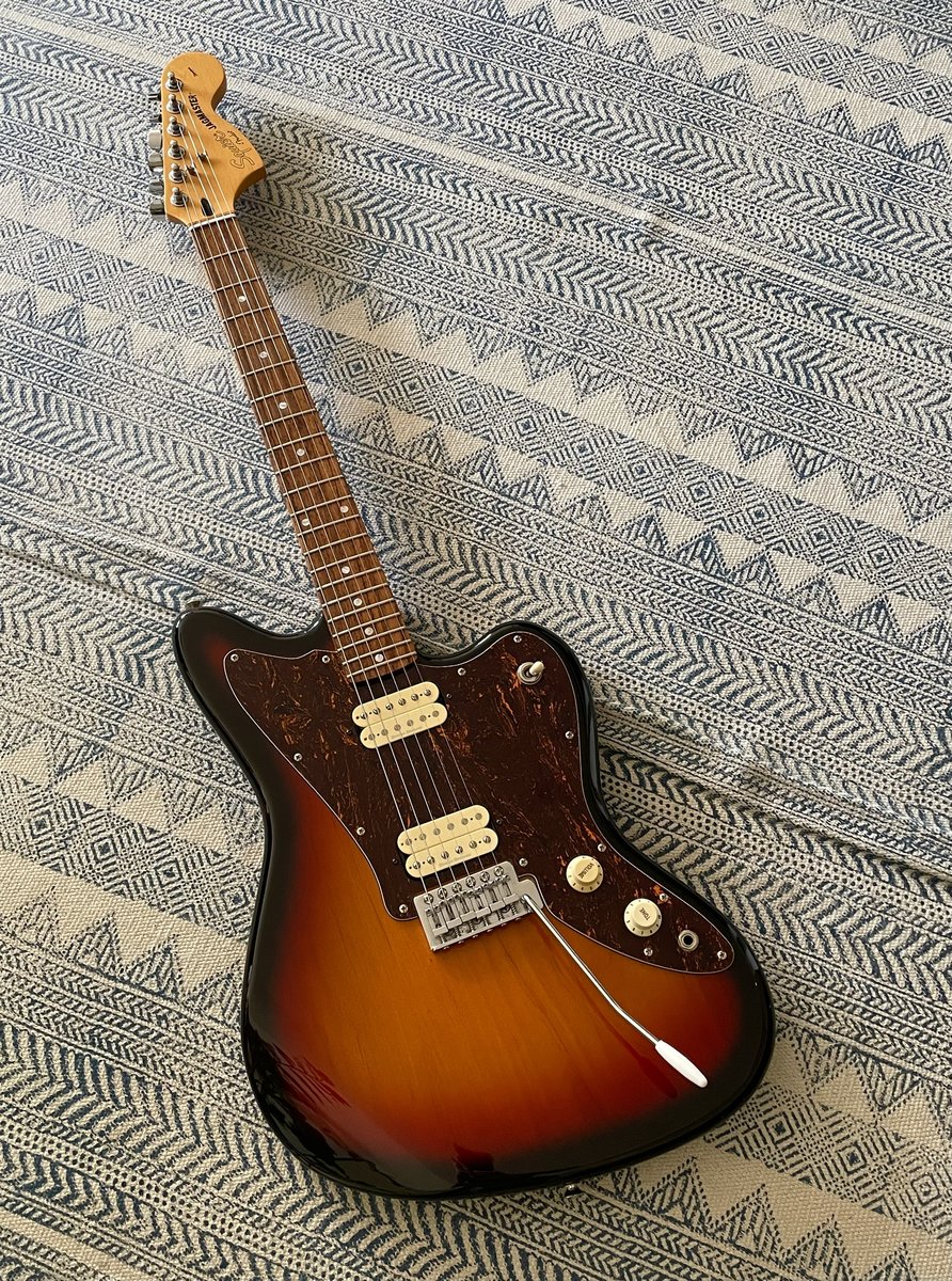 Myydään tyylikäs ja isosti soiva Jagmaster! Mielestäni parhaimpia Squiderin tuotoksia, laadultaan pitkälti samaa kuin esim. J Mascis -signature. Nimensä mukaisesti siis Jaguarin (24” kaula) ja Jazzmasterin yhdistelmä. 9,5” radius ja ohut nopea kaula. Hyväsaundiset Duncan Design -humpparit. Resonoi ja kolisee! Vibra pitää vireensä. Erinomainen kunto, takana muutama hento pintanaarmu. Kaikki toimii 👍 Hyvissä säädöissä, myös uudet EB 1046 kielet vaihdettu ennen myyntiä. Vaihdossa kiinnostaa hyvät kaiut tai vastaavat laadukkaat kitarat. Testailut Hakaniemessä, lähetyshommat hoituu kuluja vastaan Matkahuollolla. 0400197370 saa kiinni. Hinta: 420 € | |