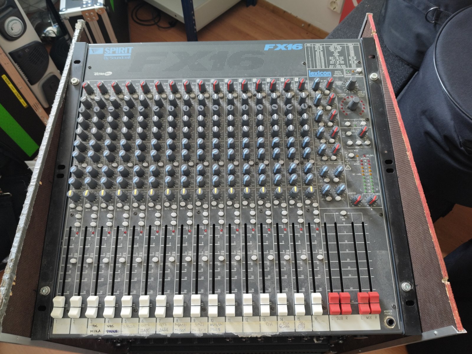 Myydään: Soundcraft Spirit FX16 + case + 2kpl räkkikikottimia | |
