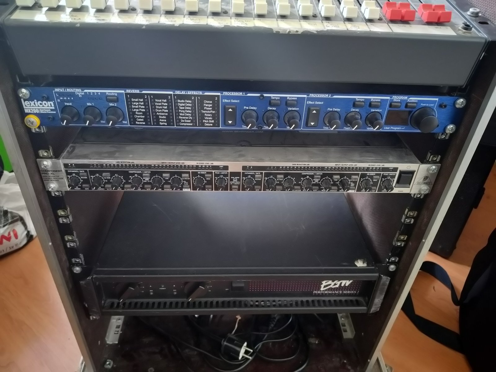 Soundcraft Spirit FX16 miksutin pyörillä kulkevalla huppumallisella casella jossa räkkikehikko (8U mahtuu) ja lexicon räkkikaiku + behkun perusräkkikompura. Alimmaisena oleva päätevahvistin tulee kaupanpäällisiksi halutessaan, toinen kanava rohisee volaa kääntäessä muuten täysin käyttökelpoinen. Koon ja painon takia vain nouto Lahden keskustan lähettyviltä. Kaikki kanavat (mikki ja linja) käyty läpi kahteen otteeseen 2025 syksyllä, ja jokainen kanava toimii moitteettomasti. Yhteydenotot pikaviestillä, kiitos! Myynnissä myös muualla. Hinta: 250 € | |