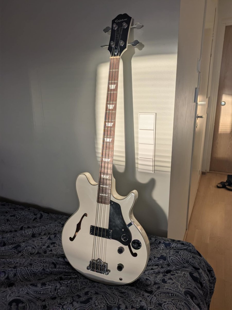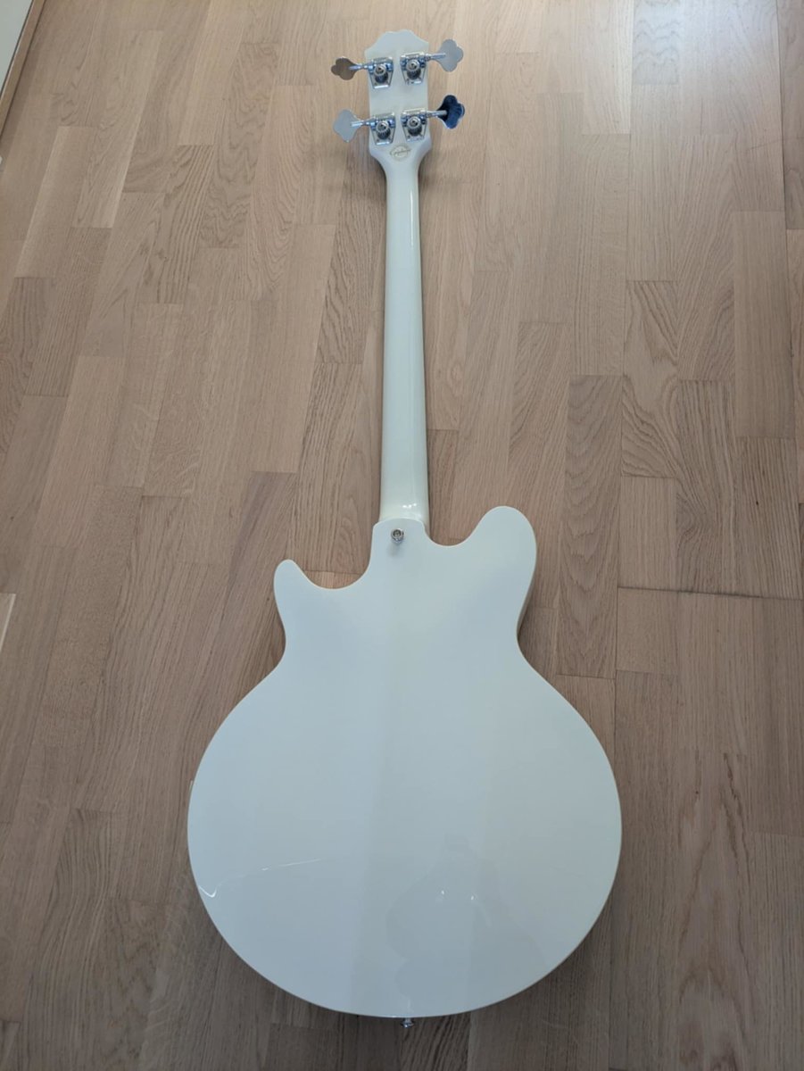 Epiphone Jack Casady Signature Semi-Hollowbody Electric Bass - Alpine White Kunto kuin uusi, Original Hardcase included. Maple body Mahogany neck Fingerboard: Indian laurel Neck profile: C Scale: 864 mm (34") Pickup JCB-1 low impedance humbucker 1 Volume and 1 tone control 3-Way rotary switch Colour: Olympic White Paikka: Turku (Vanukatu) Hinta: 690 € | |