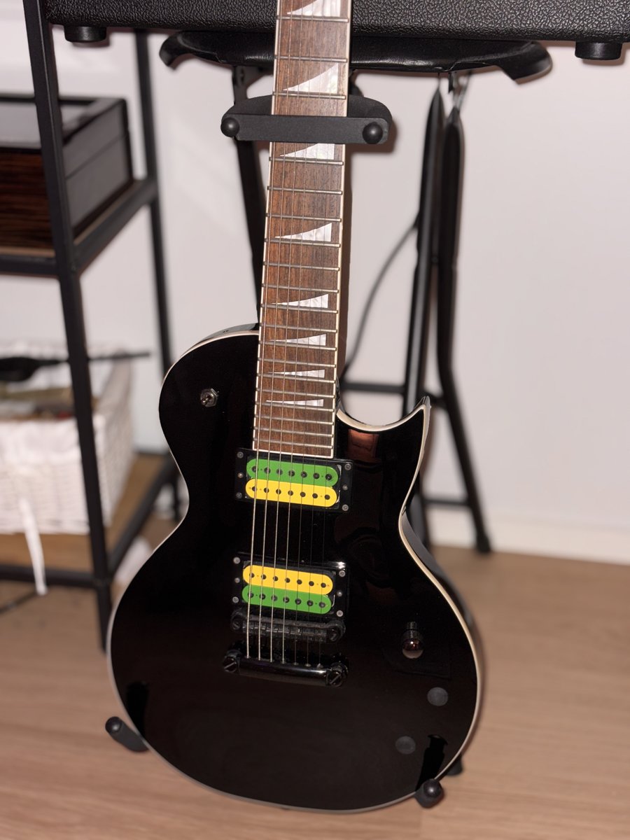 | Myyntiin 7-kielinen Jackson ystäväni puolesta. Hyväkuntoinen keppi, matalalla actionilla ja todella rouhealla soundilla; Kitaraan on vaihdatettu Kiiras Instrumentsilla Bare Knuckle Pickupsin Ragnarokit. Samalla poistettu toinen volume ja tone. Toinen volumepotikka on vaihdettu push-pull potikkaan, jossa nyt mikkien puolitus ja master volume. Potikoiden reiät paikattu siististi kumitulpilla. Kaula hiottu takaa satiiniksi. Mukaan löytyy rockbagin perus gigbagi. Speksejä: Body: Mahonki Kaula: Vaahtera, ruusupuu otelaudallaf, 12"-16" compound radiuksella 24 nauhaa 25,5" skaala Kitaraa saa tulla ihmettelemään ja koesoittamaan Jyväskylän Seppälässä. Hinta: 549 € | |